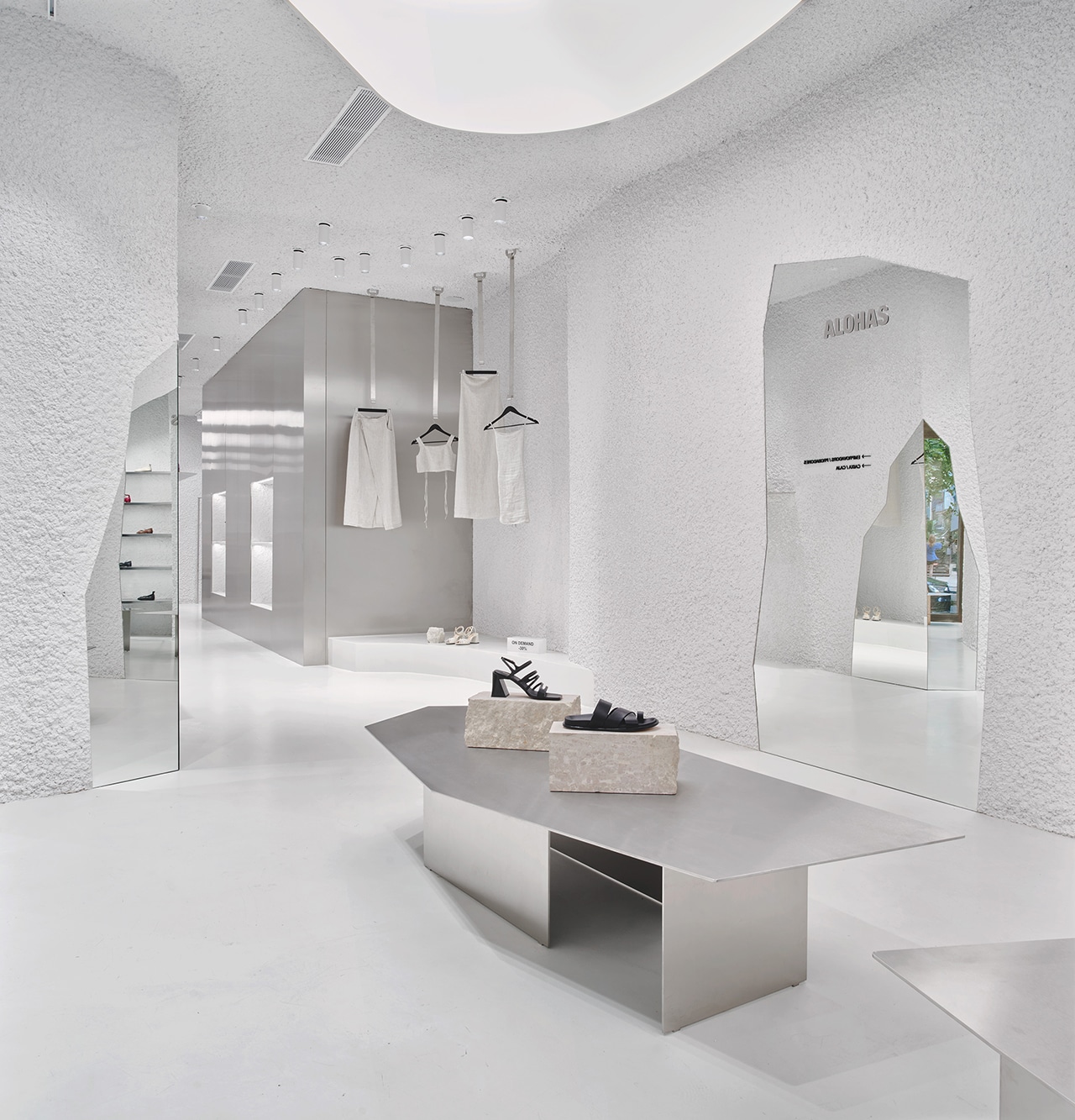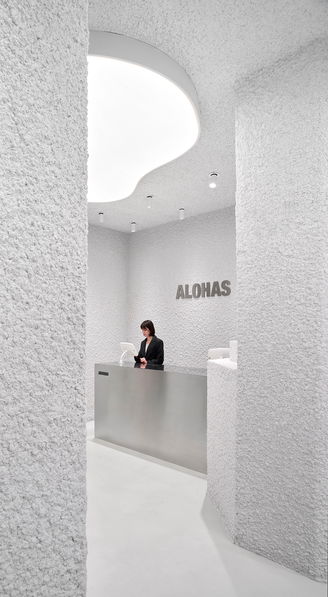 Ens vam inspirar en l’origen de la marca, nascuda a Hawaii. Partim d’un paisatge volcànic com a context i ens vam centrar en els túnels de lava com a concepte. Per a ALOHAS vam crear una cova volcànica que barreja agressivitat i sofisticació en un equilibri continu. Formes irregulars, mobiliari metàl·lic i llums que evoquen obertures naturals generen un entorn immersiu.