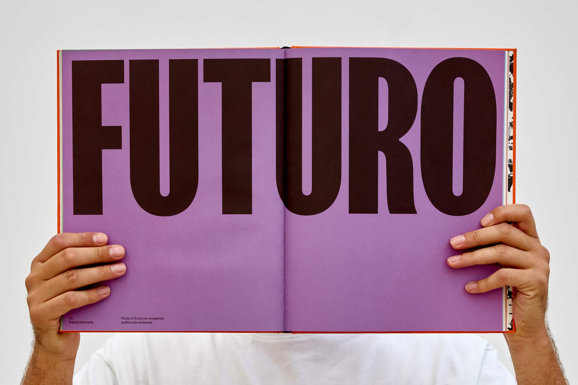 El concepte 'Votar' és una crida a l'acció a través de la reflexió. Un llibre-objecte que funciona como a bandera per a defendre els reptes del futur de la democràcia. Color taronja combinat amb Times New Roman i Suisse Intl’, i infografies brutalistes i contrastades. El sobre té la intenció de despertar la interacció per part del lector.