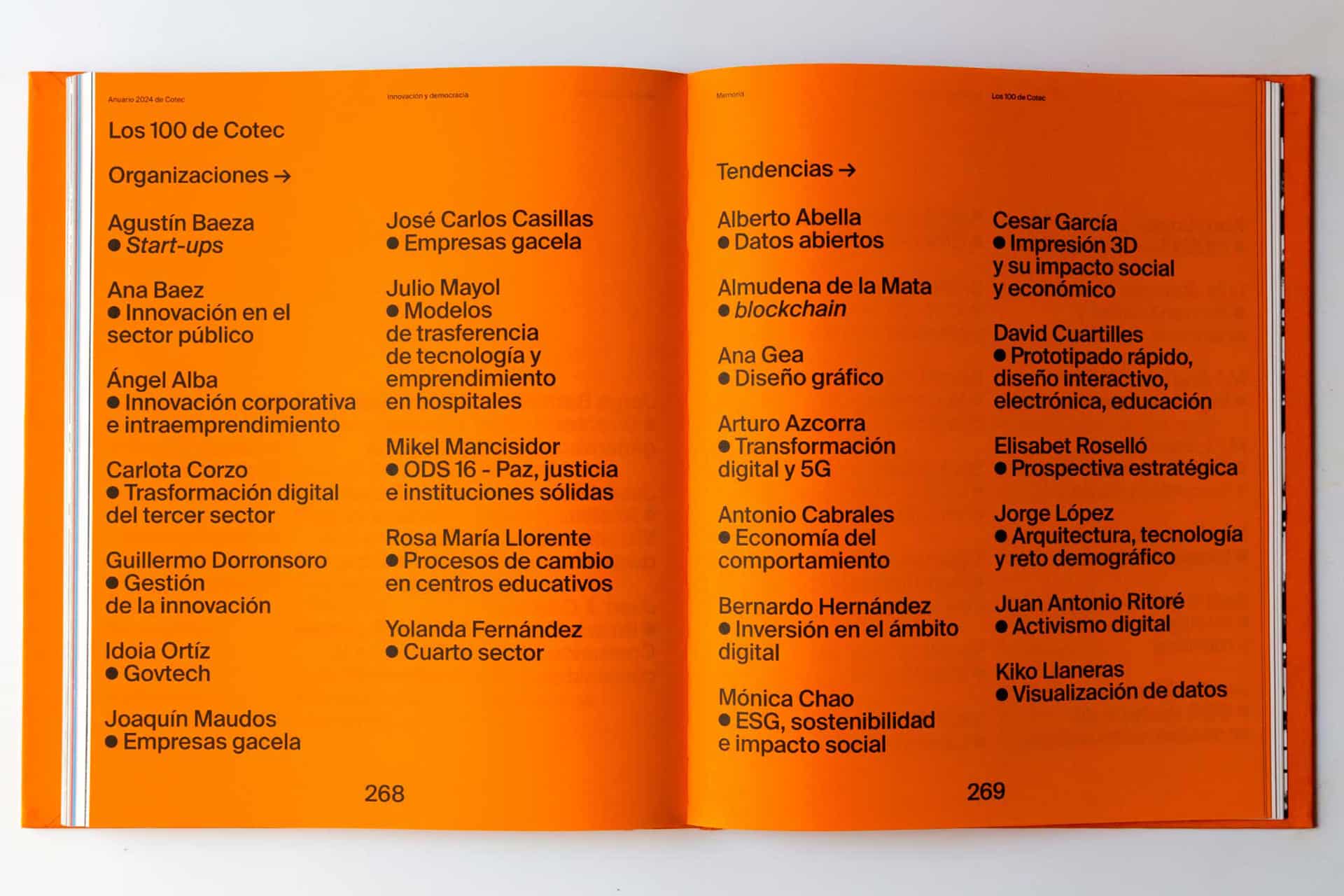 La Fundación COTEC cada any publica un llibre monogràfic amb gràfiques i articles d'investigació i informació molt densa centrat en un tema concret que vol fer arribar d'una manera amena a la societat. En aquest cas el tema va ser Innovació i Democràcia, just en un any en el que aproximandament una quarta part de la població mundial va ser cridada a les urnes i que podia triansformar la història.