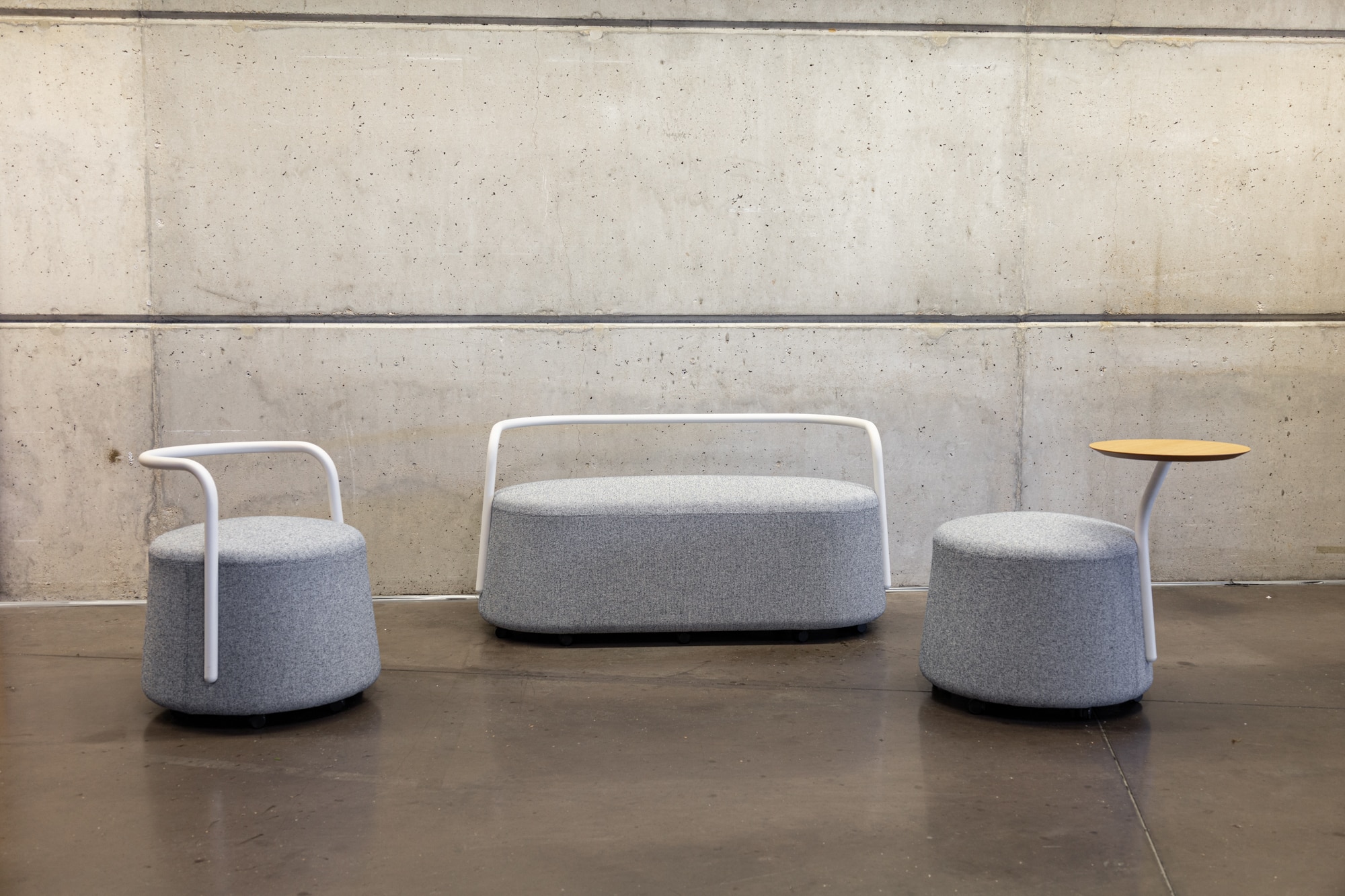 La creació de pufs simples i dobles dissenyats per a fomentar la col·laboració espontània i el confort informal, impulsant la interacció i el moviment en espais híbrids i multifuncionals. Una visió flexible, emocional i tèxtil que respon a les noves formes de treball i aprenentatge. La seua forma cònica s’inspira en la bobina de fil, i els seus entapissats reforcen el seu vincle amb la sastreria.