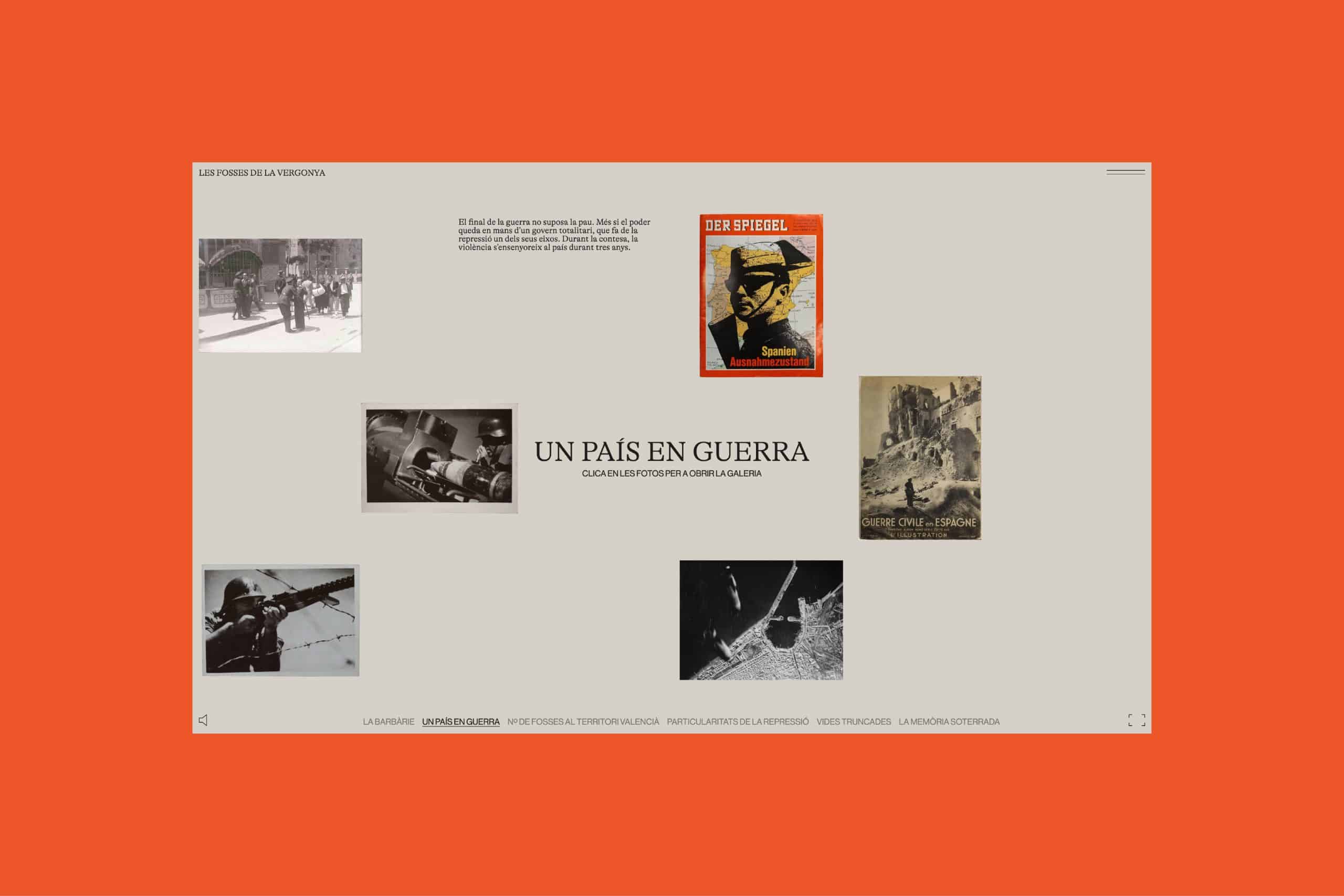 Per aconseguir-ho, hem fet una web amb un UX fet a mesura, on navegar per la història és tan fàcil com navegar per la web, amb scrolls (verticals i també horitzontals) que exerceixen de transicions entre blocs narratius. La web està repleta d'informació però lluny de ser és intuïtiva, amb un disseny concorde a la temàtica i una atmosfera solemne, rigorosa i molt emocionant.