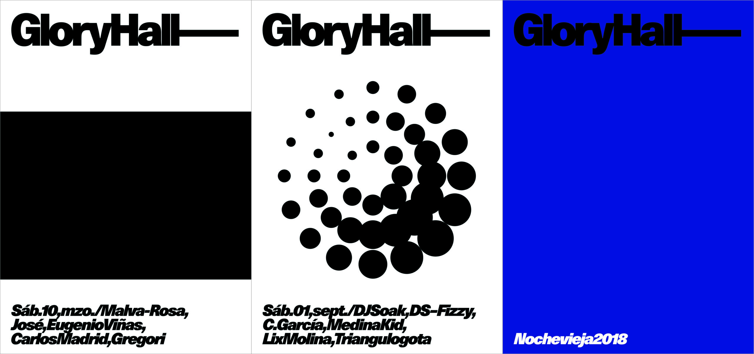 La estructura tipográfica de los carteles, la misma en todos los casos, genera un espacio gráfico central, un "hall" que es personalizado para cada sesión musical.
