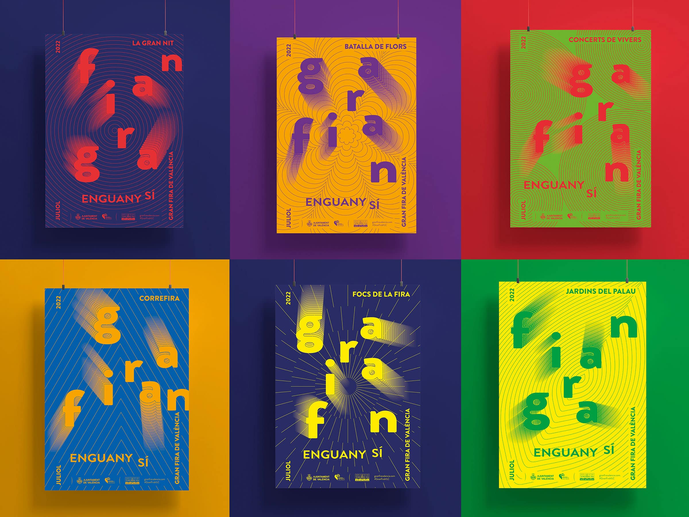 Es trasllada a la imatge gràfica mitjançant l'ús de les lletres que conformen les paraules GRAN FIRA eixe retorn a la interactuació i moviment en l'espai amb total llibertat. Sèrie de cartells donant-li entitat pròpia a cadascuna dels esdeveniments