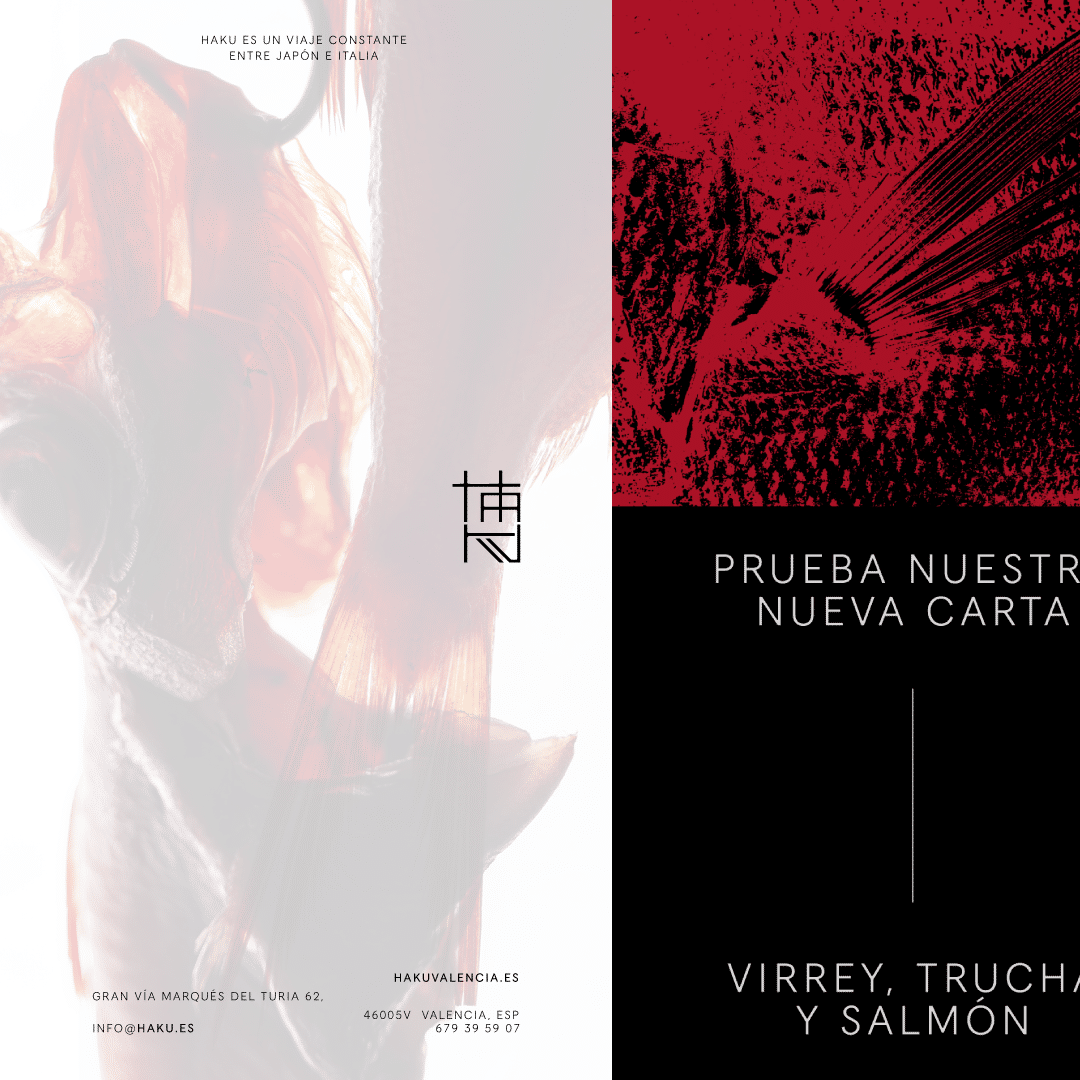 Desenrotllem la identitat corporativa de Haku València, un restaurant italo-japonés en ple cor de la ciutat, fusionant japonisme contemporani amb una mirada mediterrània. La proposta integra logotip, paleta cromàtica, disseny web, direcció d'art i gestió visual en xarxes, articulant una expressió visual que posiciona la marca com a referent cultural i gastronòmic.