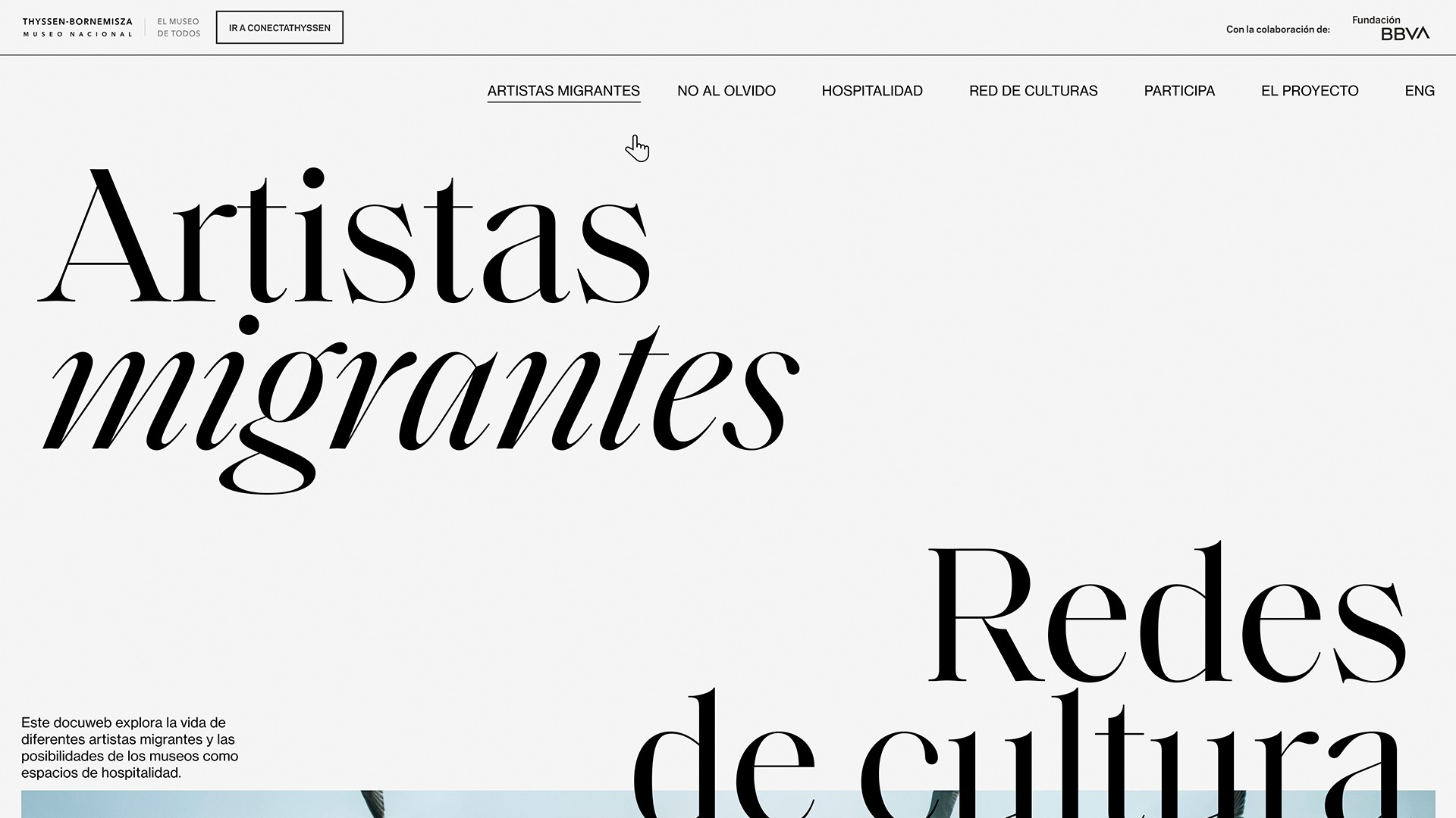 Documental web bajo la temática Artistas Migrantes con obras del museo. Abarca dirección, guión y documentación, creatividad, direccción de arte, audiovisual, locuciones, diseño gráfico, diseño y desarrollo web y promoción en redes.