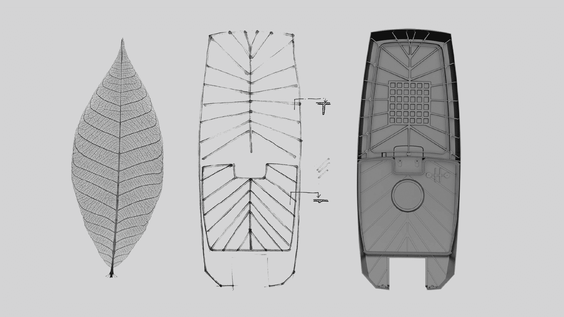 Disipación de calor basada en la mímesis de una hoja Monstera. Se ha conseguido optimizar material observando la naturaleza. Se han reducido significativamente los tiempos de instalación. Líneas depuradas que permiten no acumular suciedad.