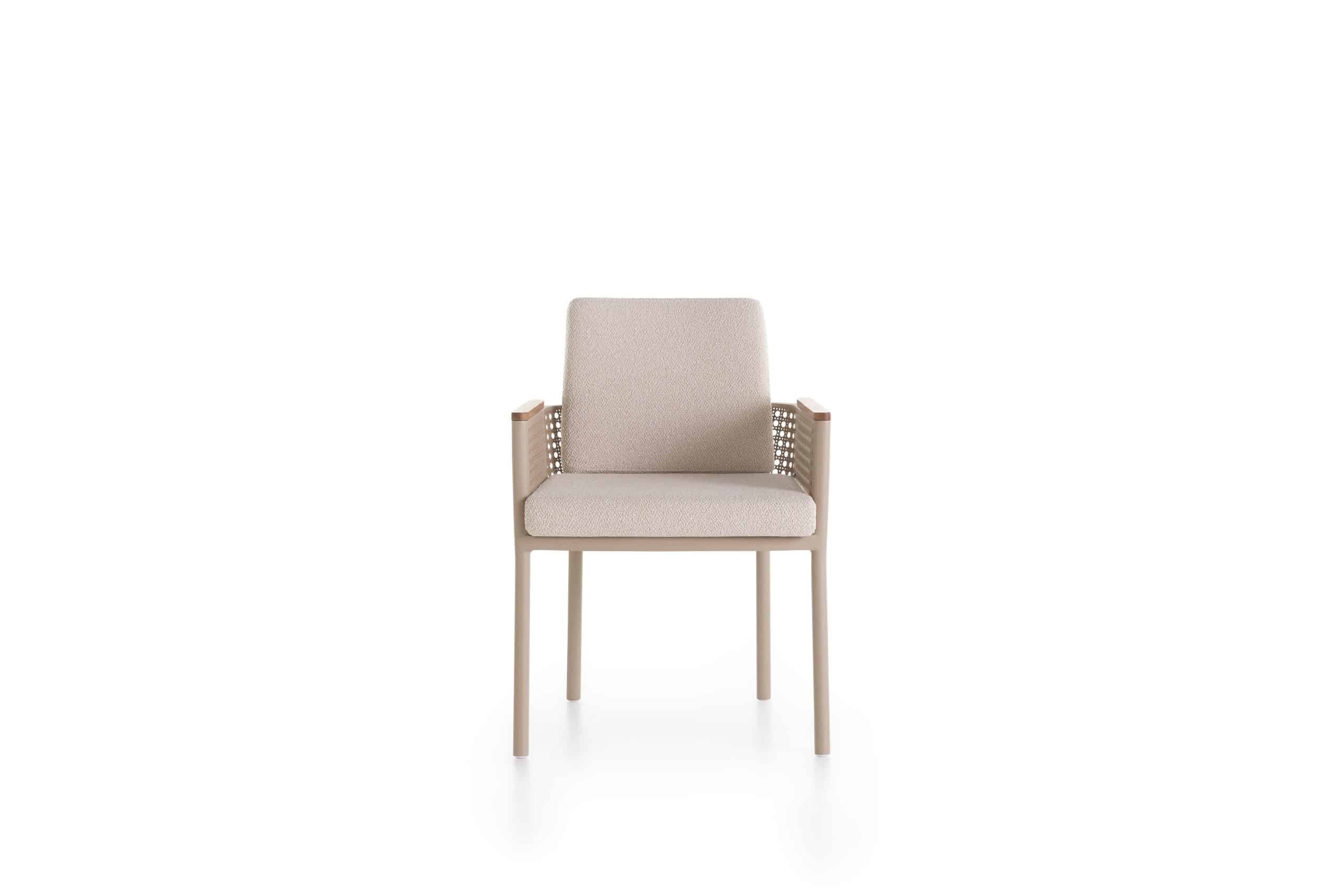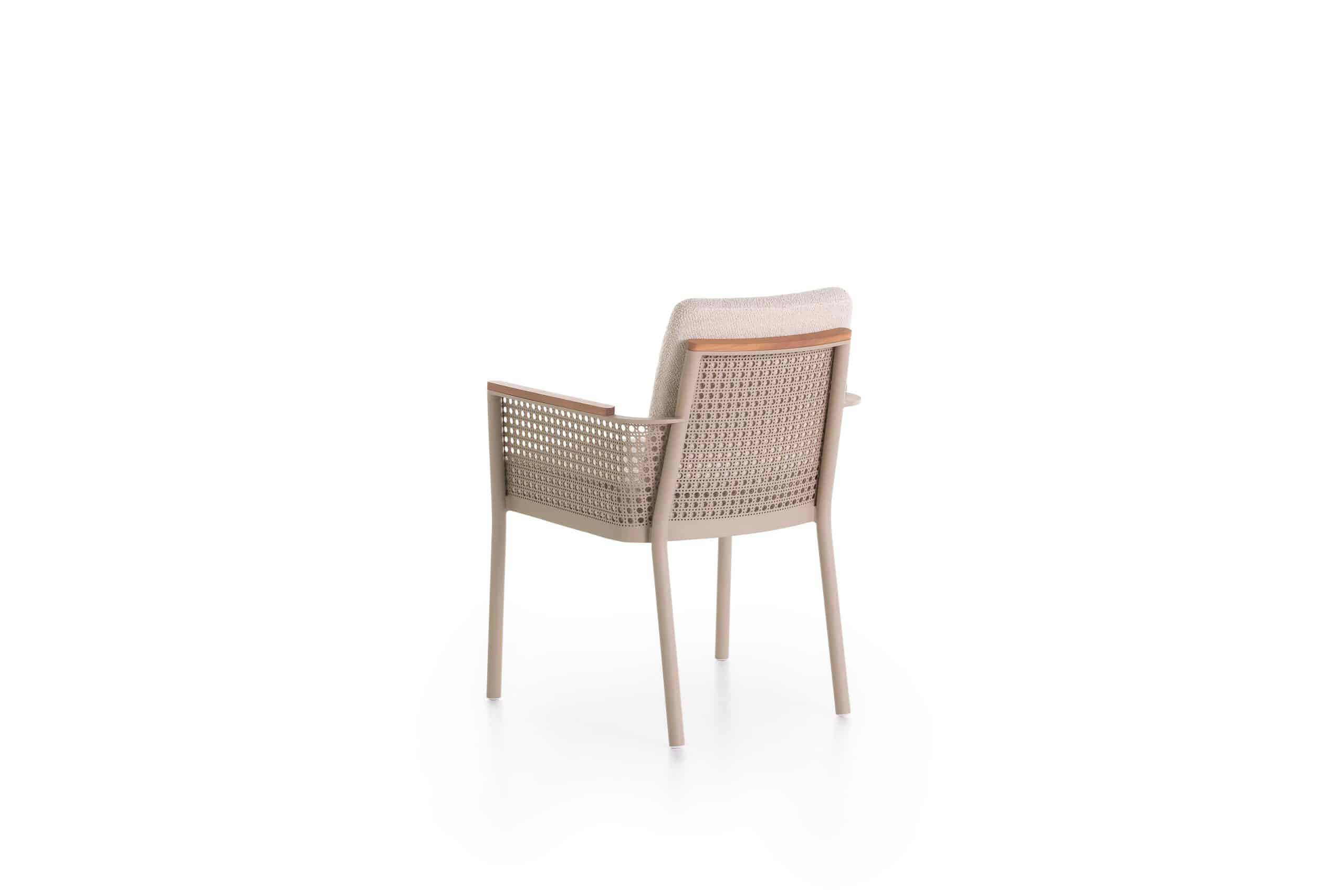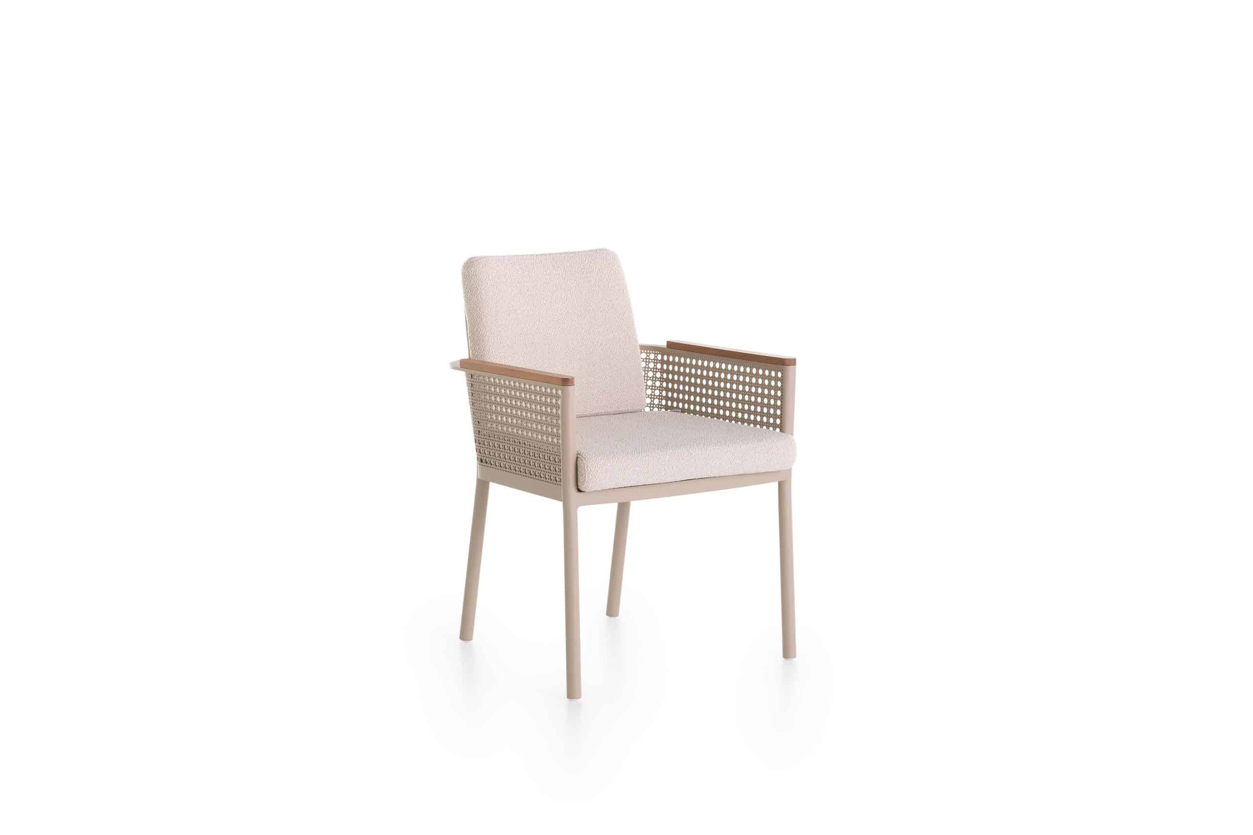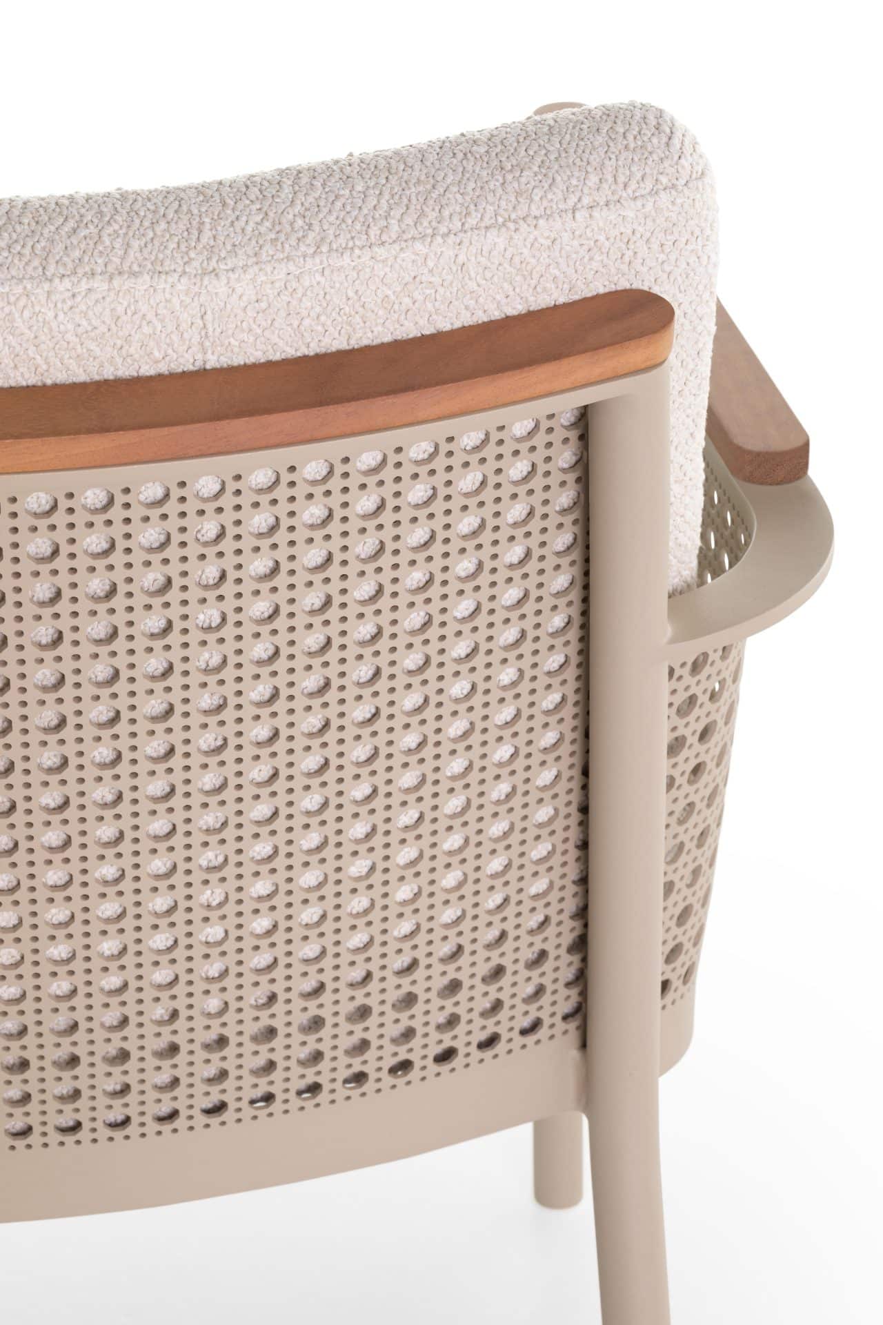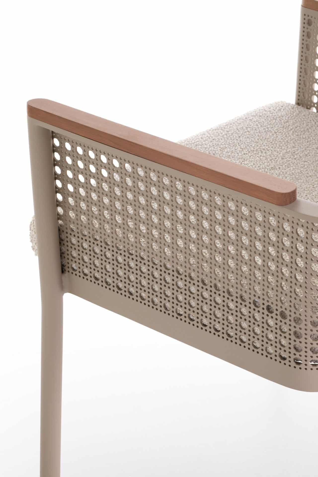 La silla BOSC está inspirada en las tradicionales rejillas de mimbre elaboradas de manera artesanal para respaldos y asientos del mobiliario popular. Esta solución traslada la estética flexible y curvilínea de esta técnica al mobiliario de exterior mediante el uso de chapa microperforada de aluminio.