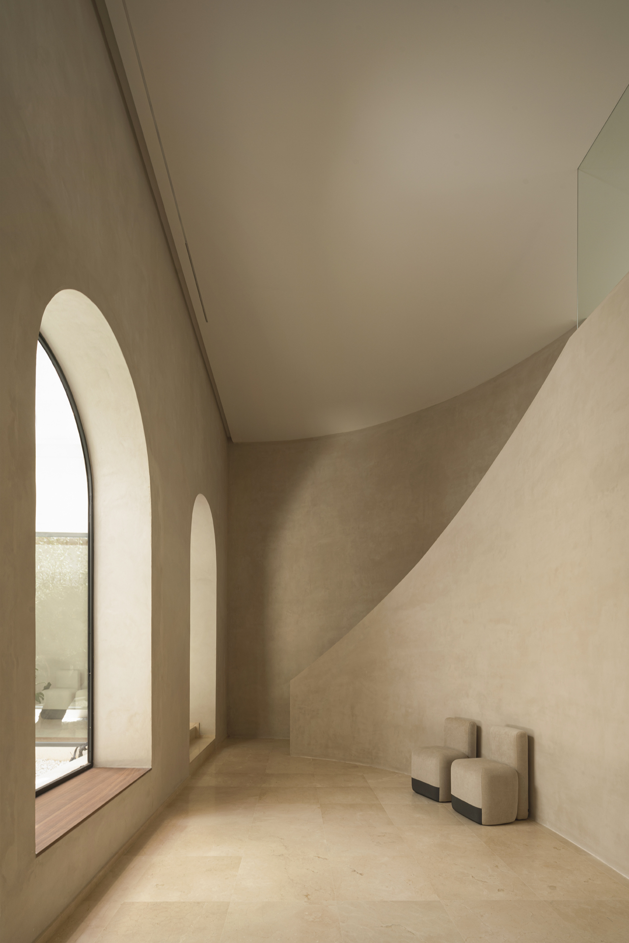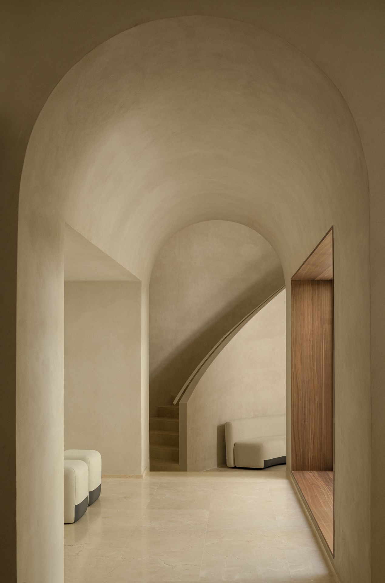Se optó por crear un lugar de espacios amplios, tranquilos y luminosos en los que la materialidad y las geometrías curvas consiguieran alcanzar una atmósfera diferenciadora y especial. Un espacio donde se respire el silencio y se sienta la belleza.