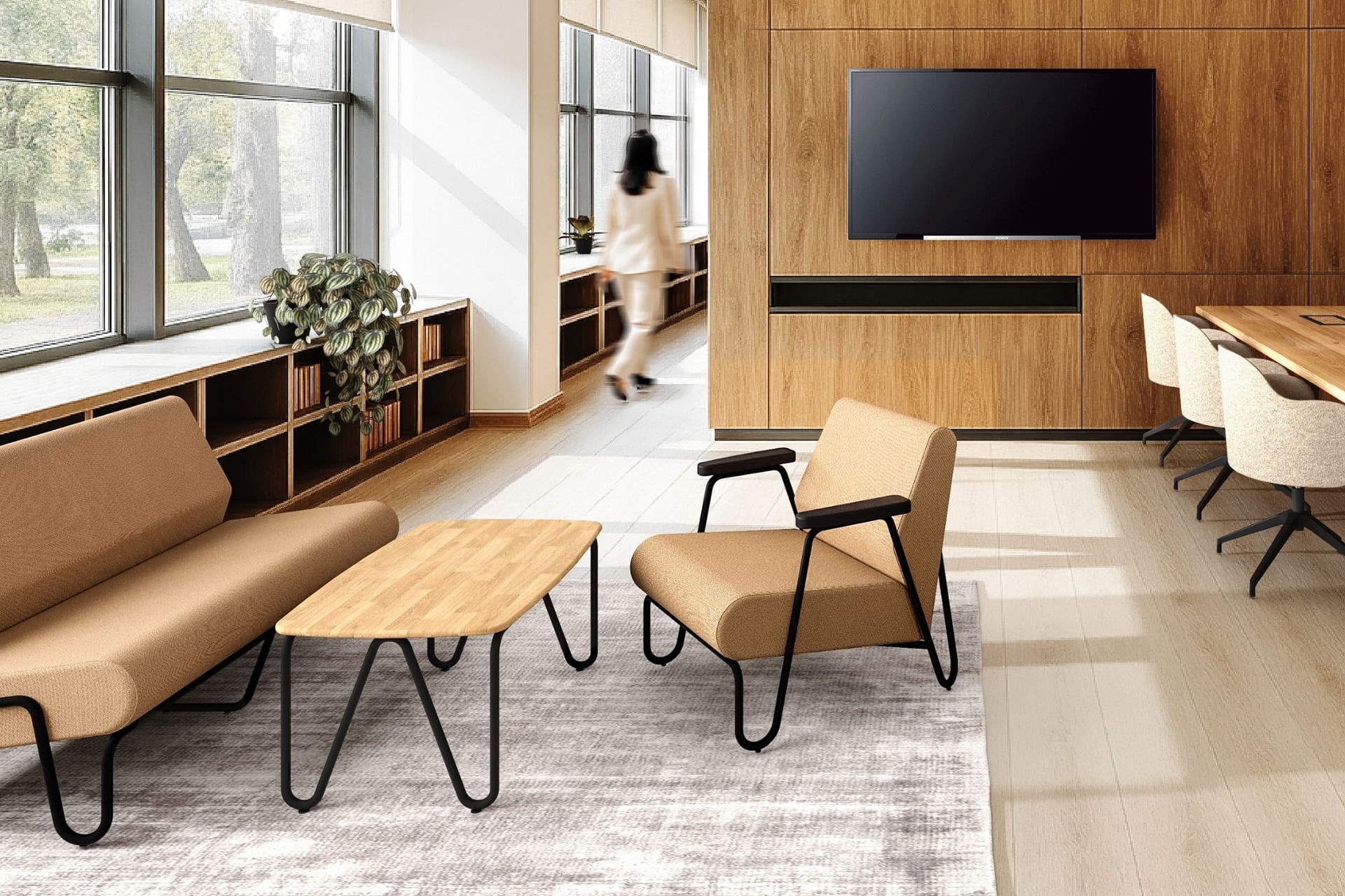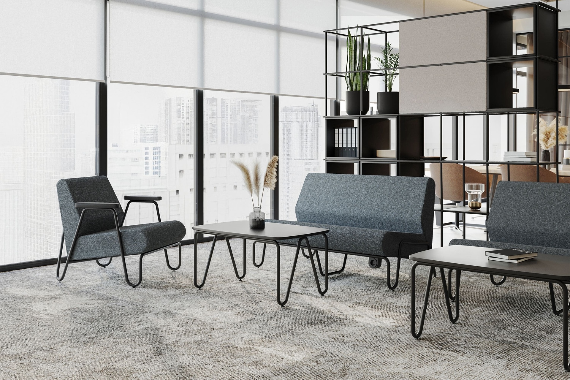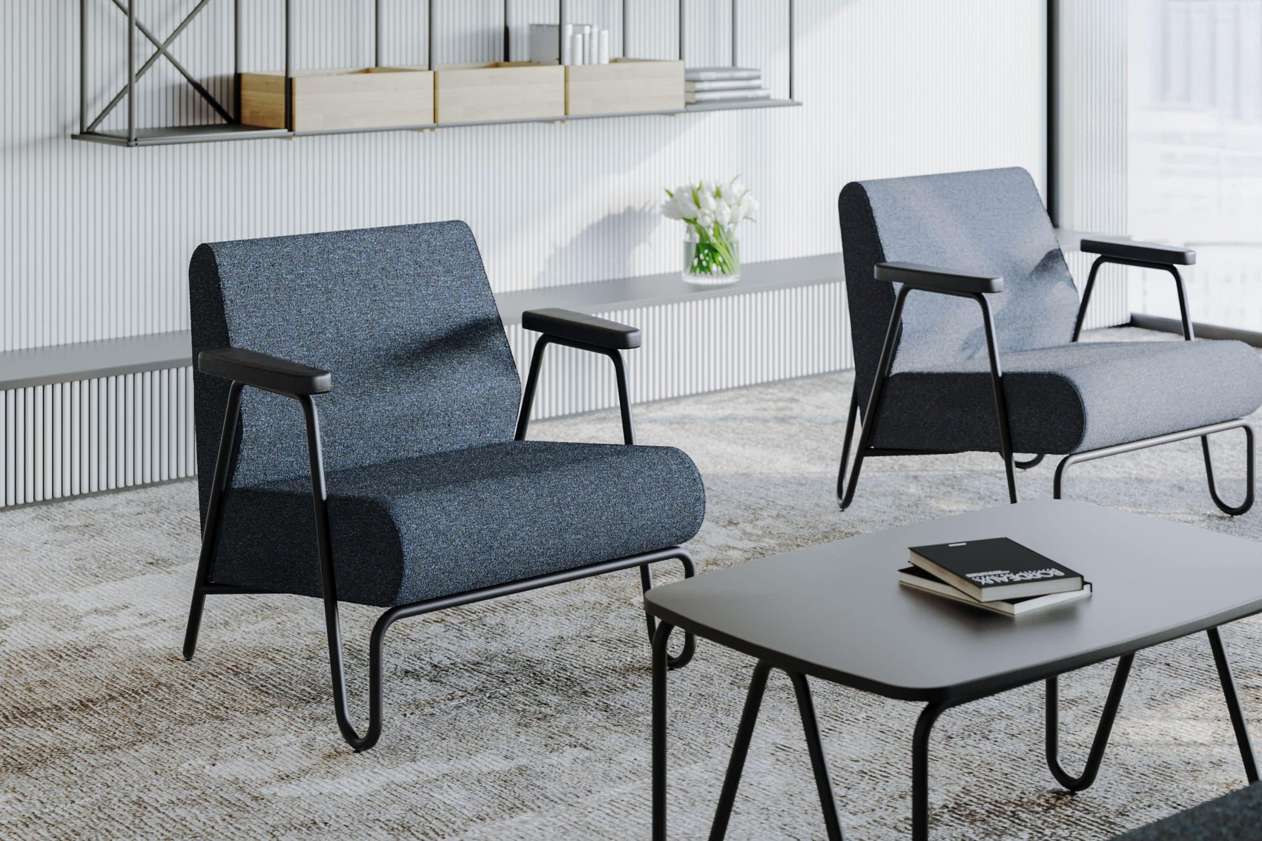 El punto de partida para el diseño de la colección Clip fue algo sencillo pero icónico: un clip. Inspirados por sus líneas limpias y curvas, creamos la base de metal curvado teniendo en cuenta las proporciones y ergonomía de un asiento. Encaja perfectamente en espacios de reunión informales en oficinas modernas, recepciones, hoteles y cafeterías.