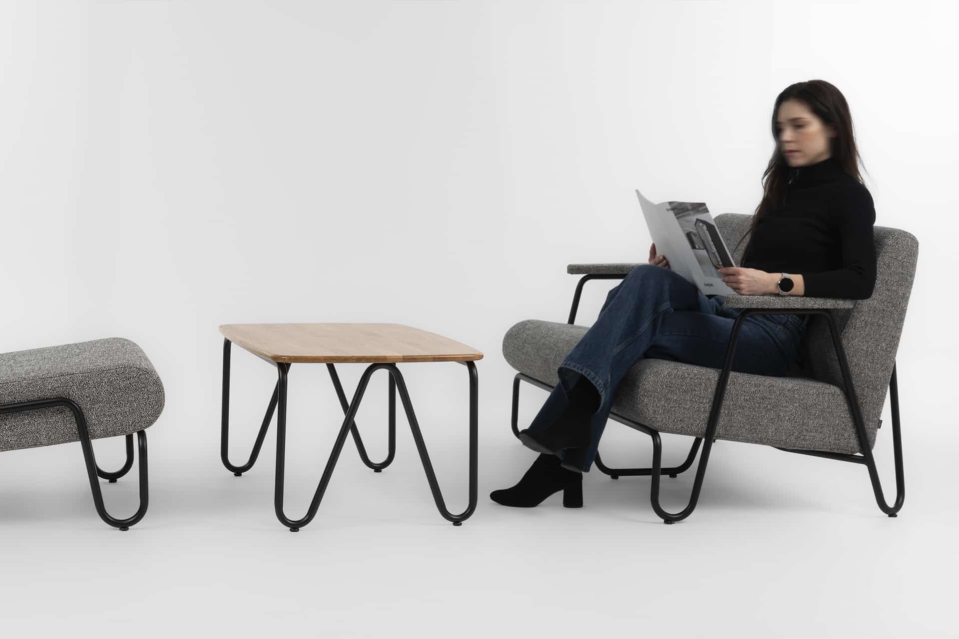 La colección de asientos tiene que ofrecer una comodidad excepcional, diseñada conscientemente, pensada desde el punto de vista de tecnología, ecología y confort. Tecnológicamente sencilla, basada en una estructura de tubo de acero curvado, un asiento con muelles y espuma de rebote. Modular, fácil de montar, reciclable y económica, desde el diseño hasta la producción y el uso.