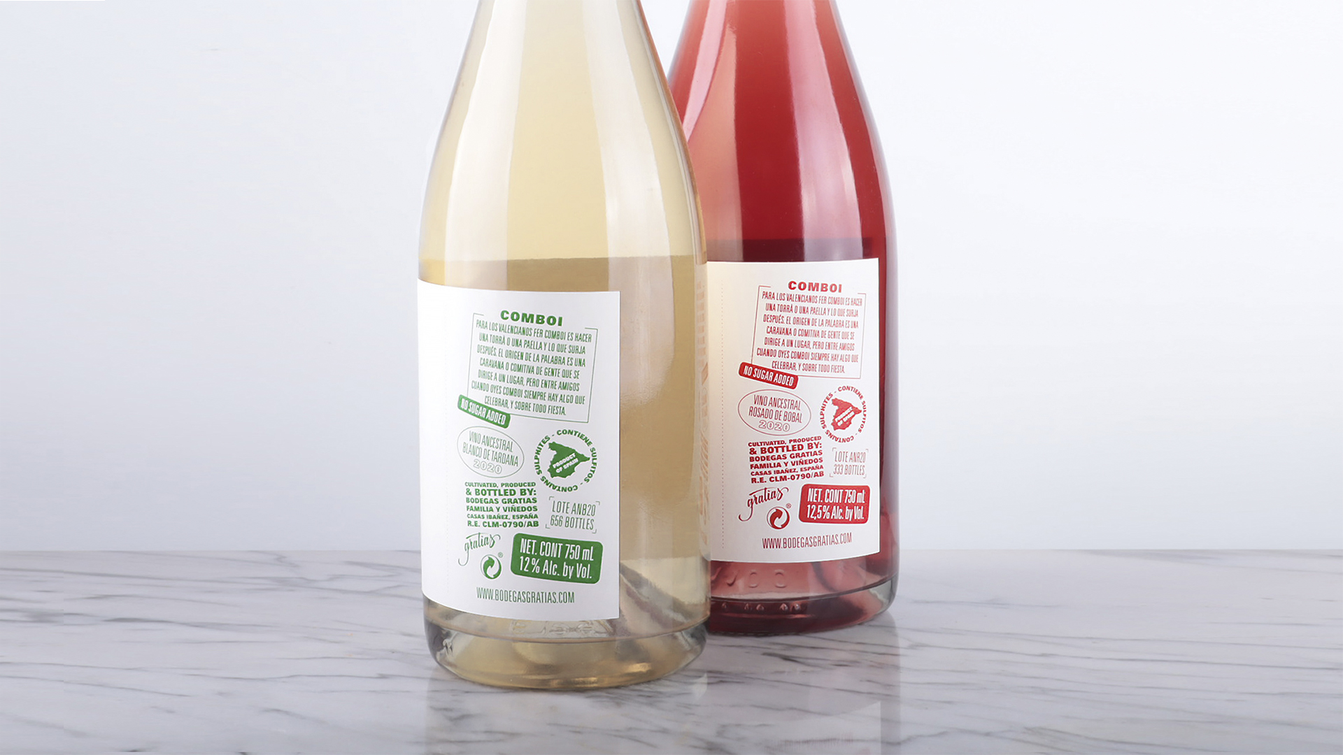 Imágen para estos vinos, jóvenes y frescos, con un carácter festivo y muy relacionado con las costumbres y cultura valenciana. Empleamos elementos gráficos muy relacionados con el público valenciano.