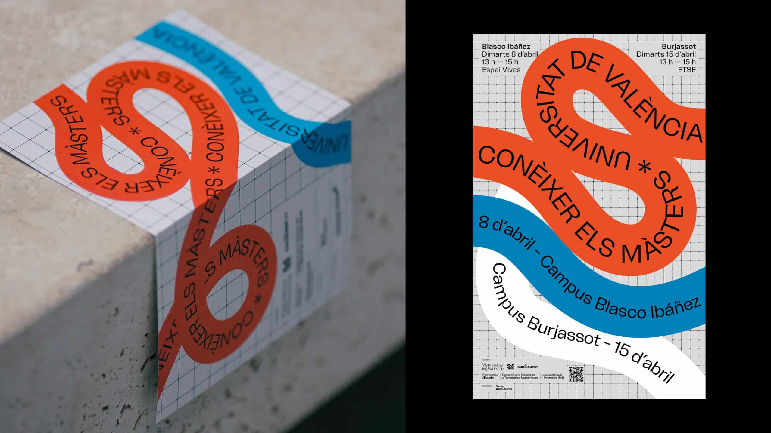 Conèixer els màsters es un programa de la Universidad de València que busca orientar a los alumnos en el siguiente paso de su carrera profesional. El objetivo era crear una identidad que se desarrollase tanto en materiales impresos, como en eventos y en el entorno de las redes sociales. Una identidad que representase los posibles caminos que los alumnos de los últimos cursos pueden recorrer.
