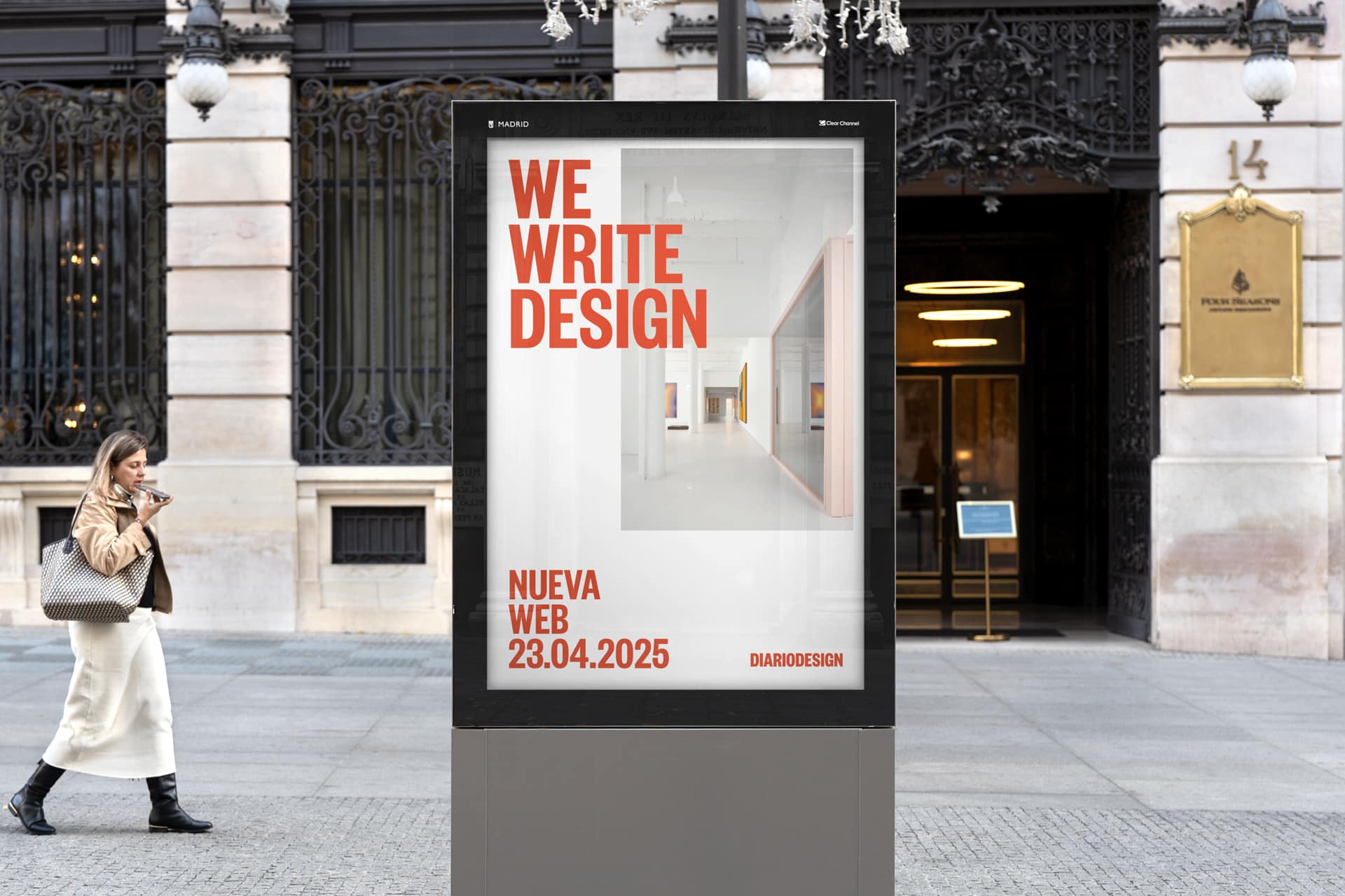 Dada la naturaleza digital del medio, la nueva identidad se implementó, principalmente, en contextos digitales: nuevo sitio web y nueva comunicación online, parametrizados en un nuevo manual de marca y comunicación. Trabajamos codo con codo con el equipo interno de Diariodesign para asegurar la correcta implementación. Paralelamente, se lanzó una campaña exterior anunciando el cambio de identidad.