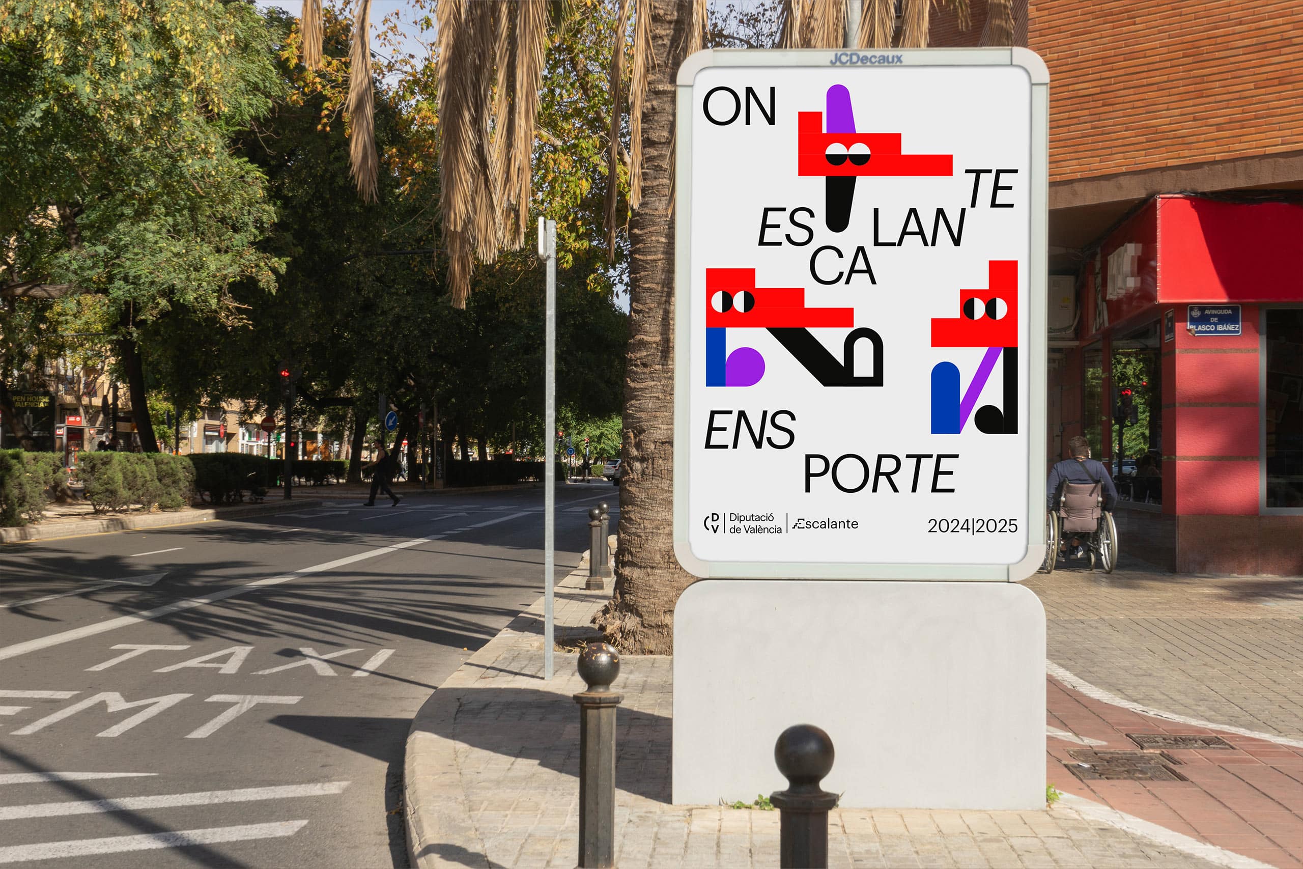 Bajo el lema «On Escalante ens porte», se utiliza el nombre como extensión del logotipo vinculándolo al concepto de «escala». El diseño presenta un personaje dinámico en constante movimiento, reflejando la itinerancia real del proyecto por diversos teatros de la ciudad y el viaje imaginario de cada obra.