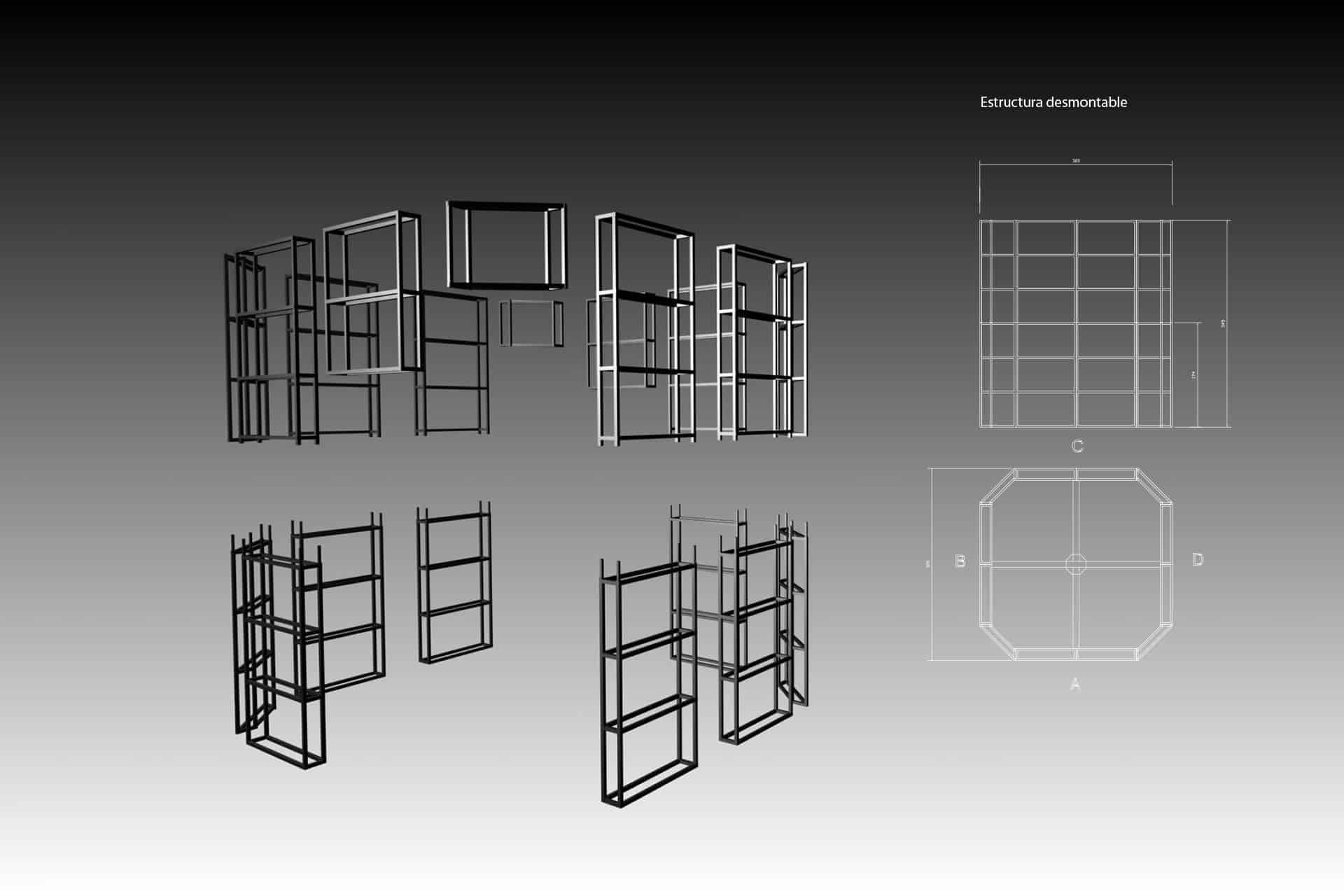 La estructura central es modular y totalmente desmontable, lo que facilita el transporte de la torre de más de tres metros, garantiza su adaptabilidad a distintos espacios y refuerza su carácter itinerante. Los elementos exteriores actúan como contenedores con objetos simbólicos, ilustraciones de referencia cinematográfica y material audiovisual específico de diferentes experiencias de soltería.