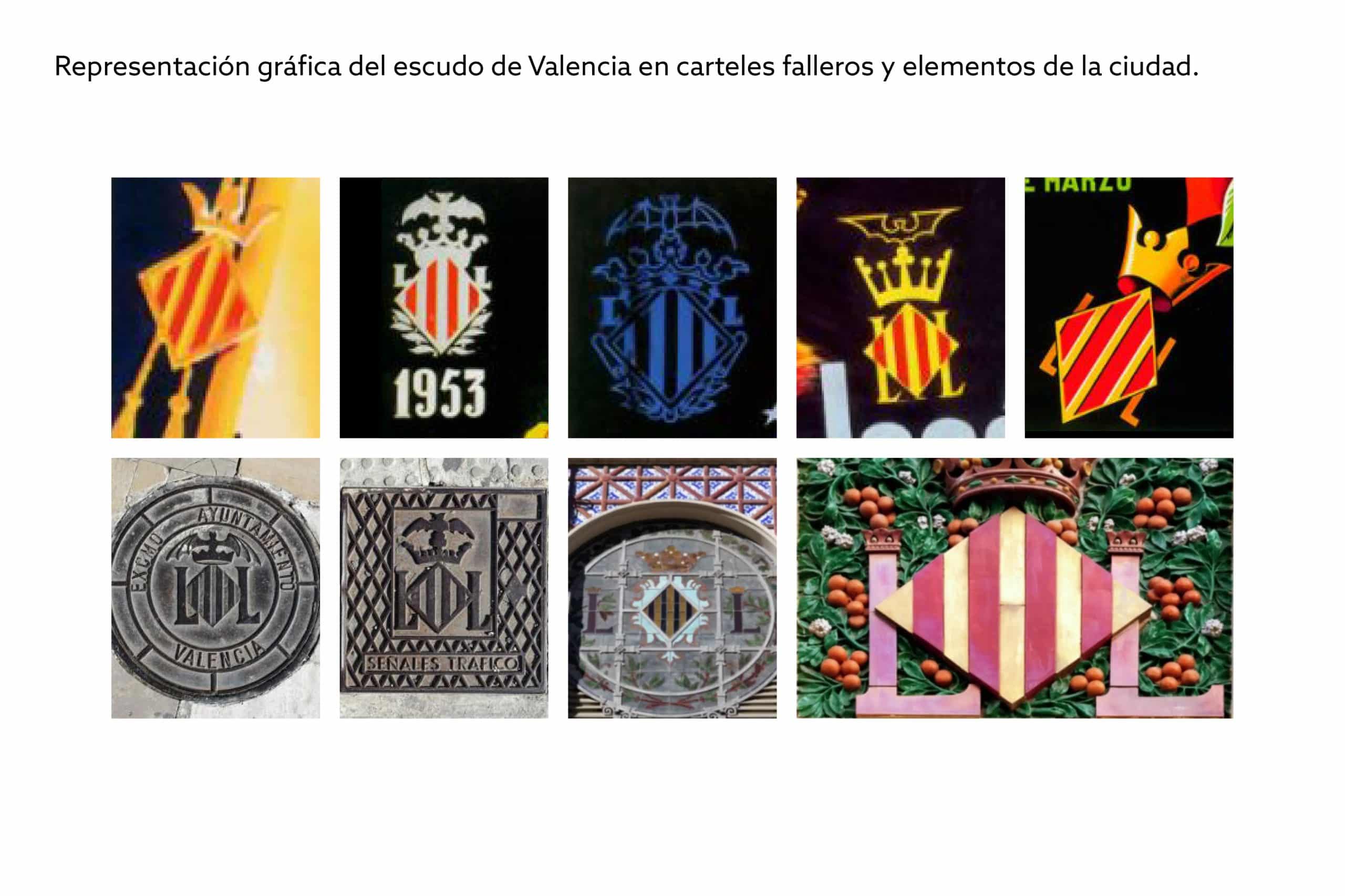 El diseño parte del escudo de Valencia, que ha tenido múltiples interpretaciones en el cartelismo de las Fallas a lo largo de la historia. Se realiza una versión más sintética del escudo a la que se incorpora el gancho presente en la identidad de Ruzafa, uno de los símbolos de este barrio de la ciudad. Este escudo se sitúa en el centro de la palabra Falles, aprovechando la doble ele (‘Il’).