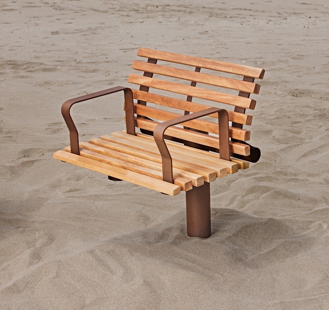 Fabricada bajo estándares de alta resistencia, Fungi utiliza acero galvanizado o aluminio con corte láser de precisión. El acabado en polvo de poliéster garantiza protección UV y anticorrosión. La superficie permite elegir entre metal o madera sostenible. El sistema incluye un anclaje oculto de seguridad, logrando una pieza robusta, antivandálica y de bajo mantenimiento.
