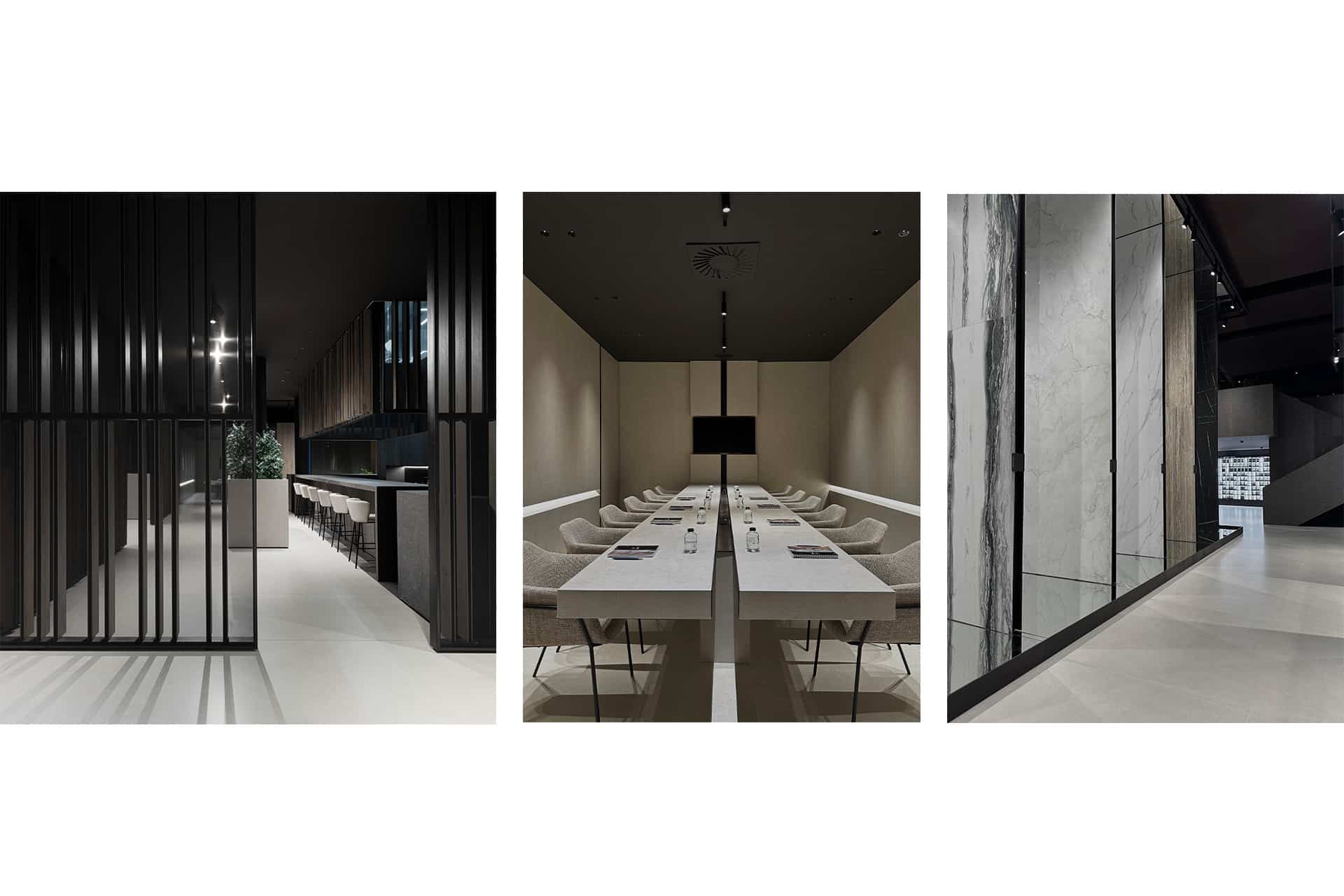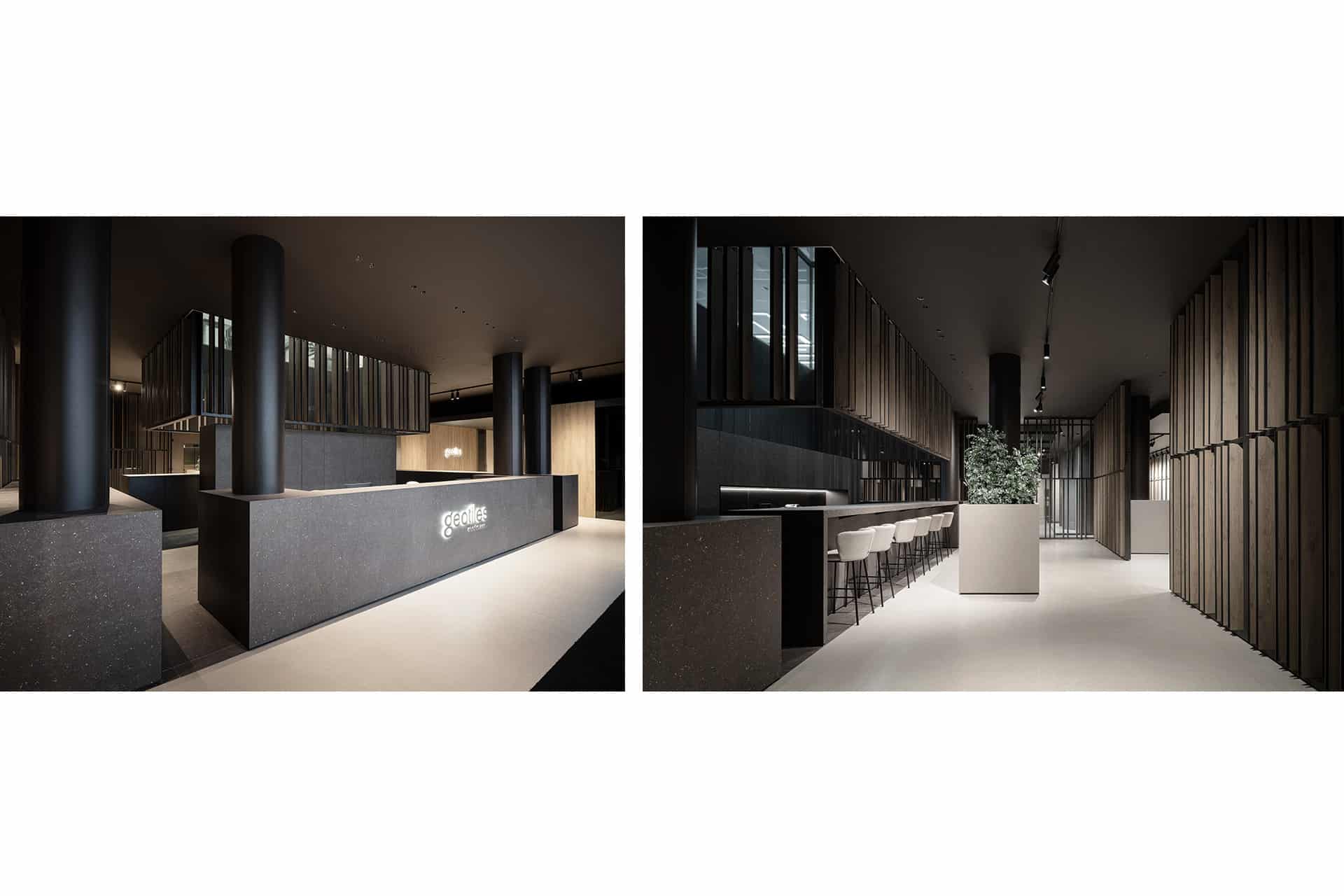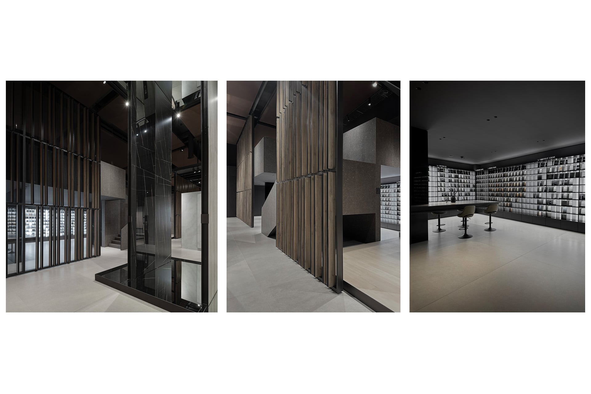 Un espacio diseñado modularmente para su montaje y posterior reutilización. Al igual que la cerámica que se utiliza basada en la economia circular. Un espacio de gran caracter industrial puro, elegante y contundente.