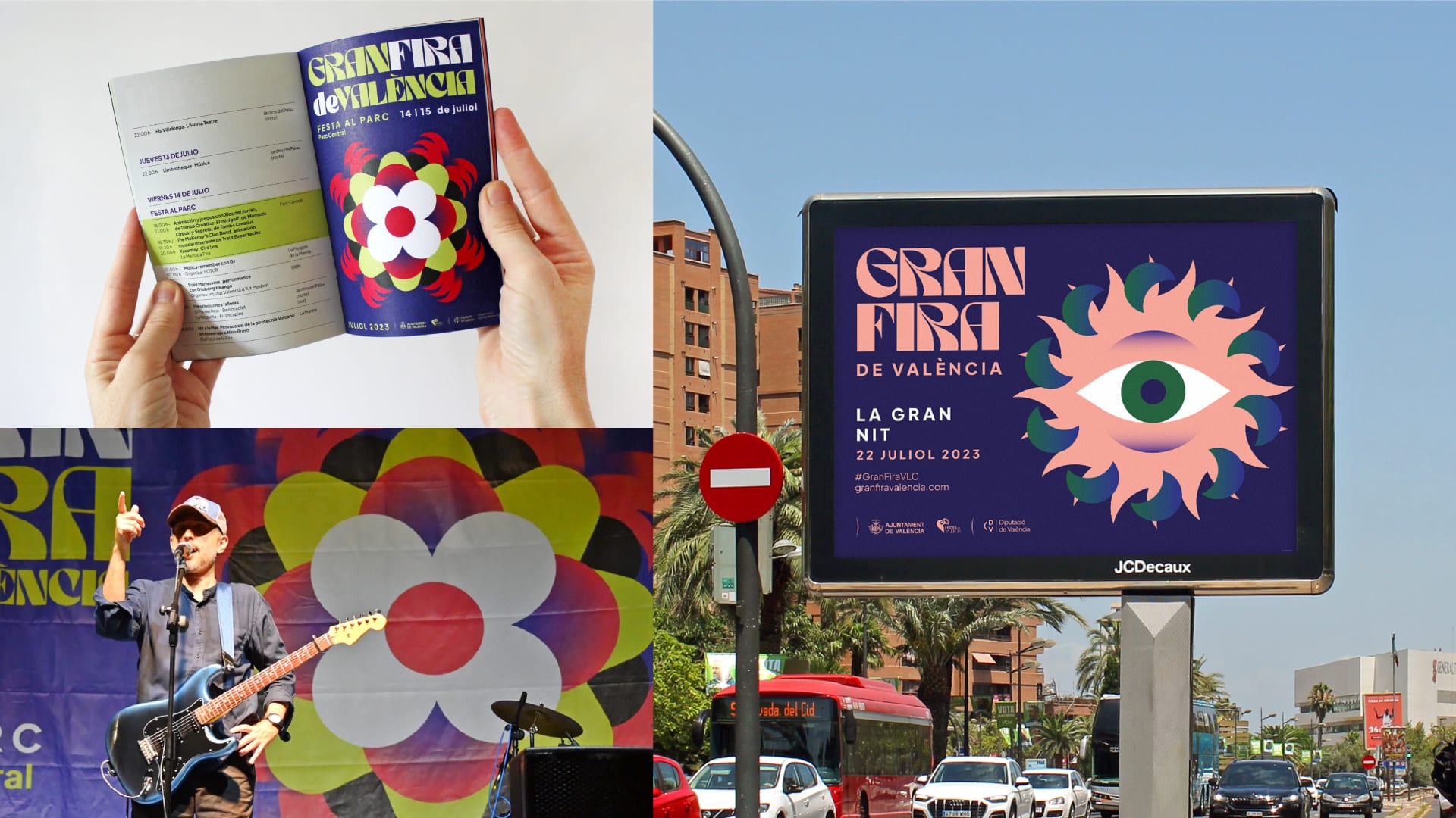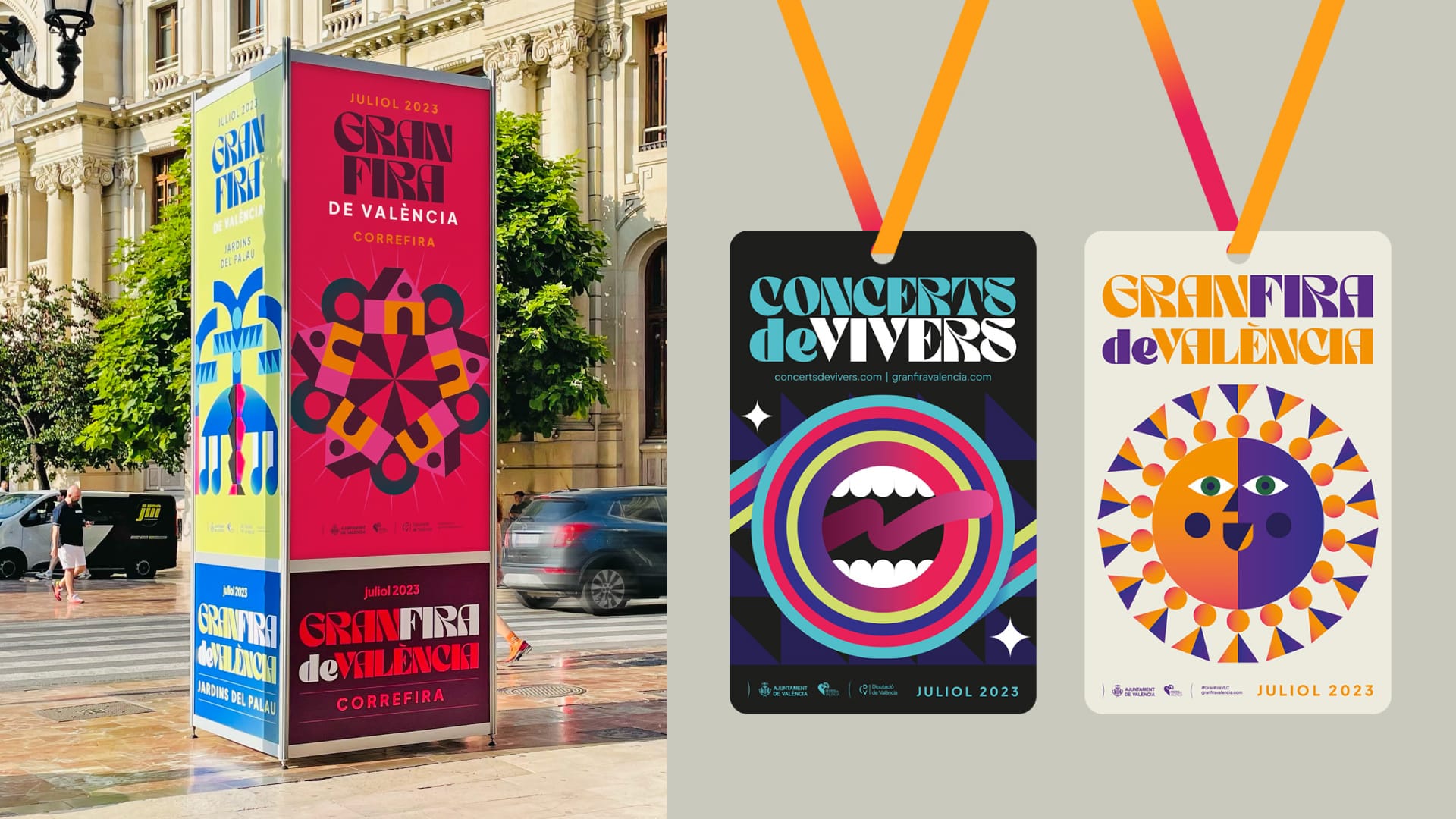 La Gran Fira de València en época estival tiene una amplia y variada oferta festiva para todos los públicos tanto de día como de noche. La imagen debía representar esta cualidad en toda la ciudad y transmitir el carácter vital de los valencianos