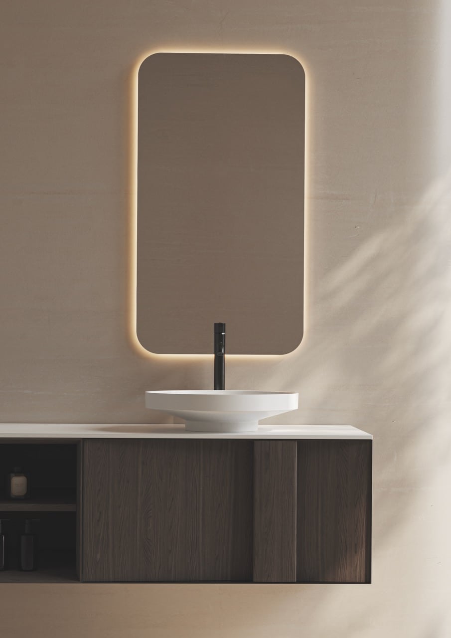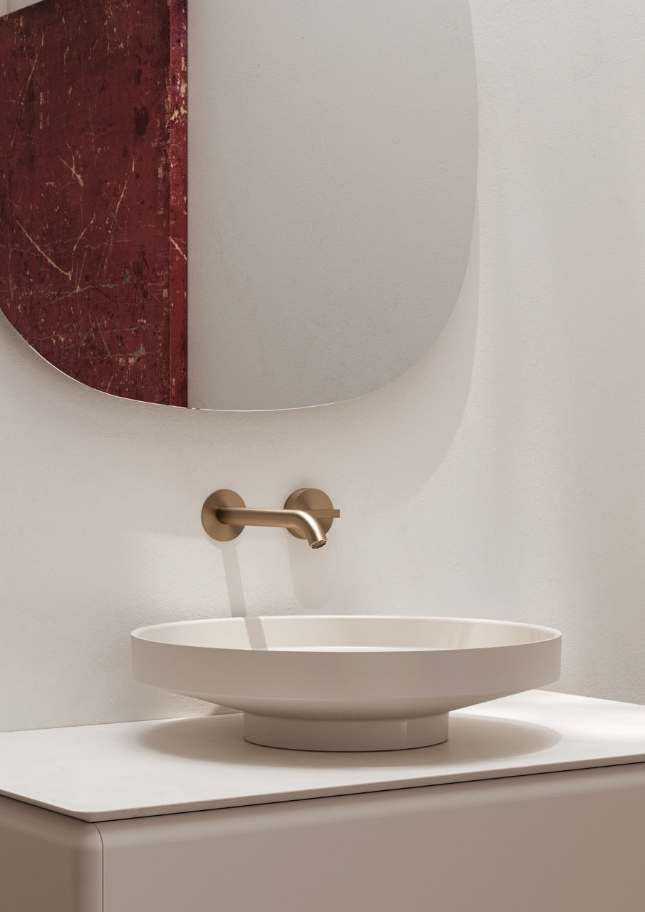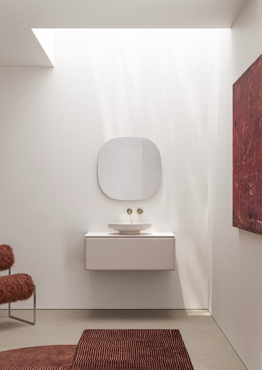 Hac es una colección de lavabos realizada en solid surface que plantea un diseño con un fuerte voladizo perimetral que permite acercarlo e incluso volarlo sobre el mueble de baño. Con esto conseguimos una mejora postural en su uso y un diseño inclusivo que se adapta a usuarios jovenes y séniors sin perder calidad estética ni forzar a un aspecto clínico o geriátrico.