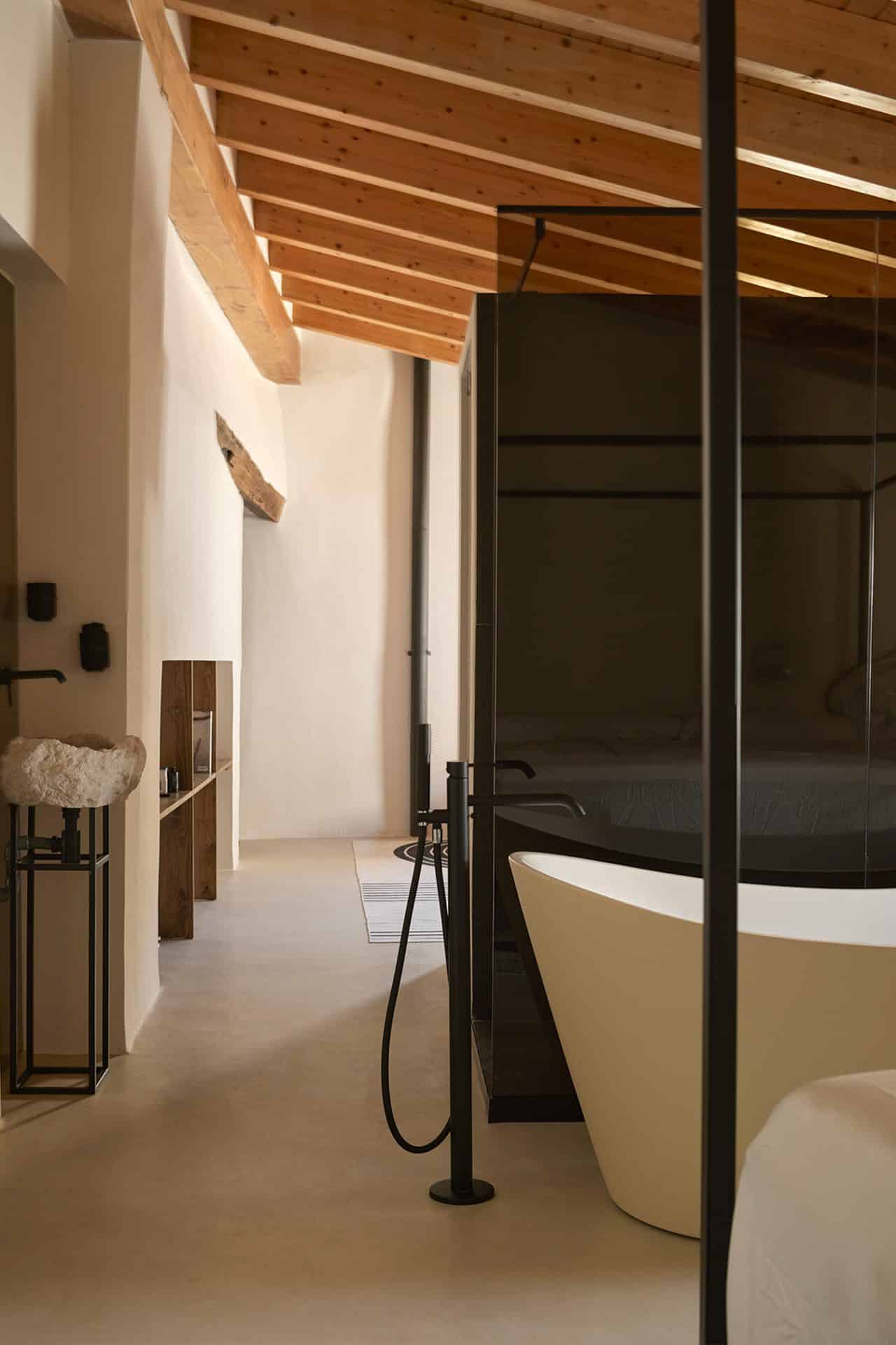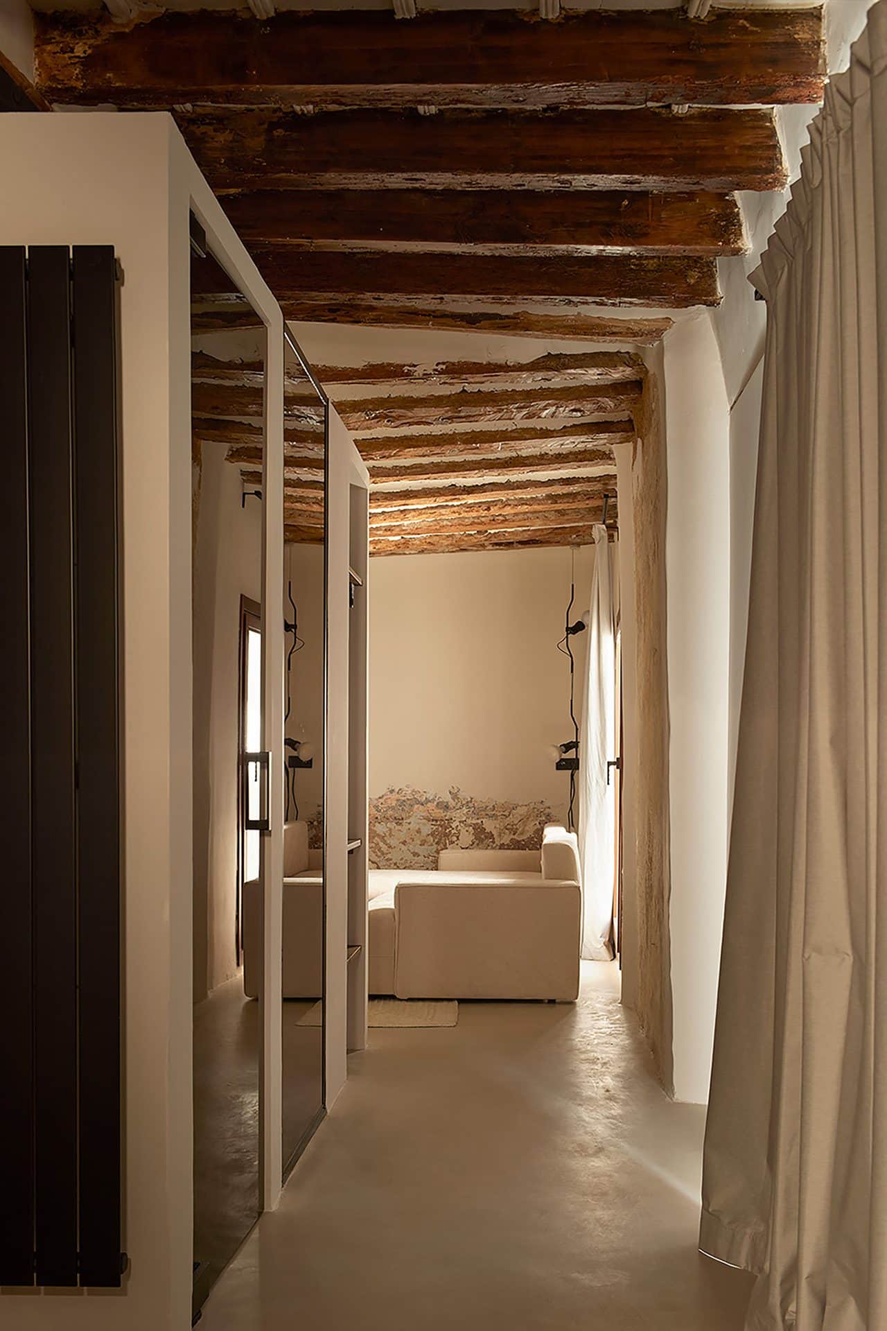 La solución responde a una estrategia clara: recuperar antes que revestir. Los materiales originales se muestran con sinceridad, revelando las capas del tiempo y aportando un carácter auténtico. Así, la vivienda se presenta como un ejercicio de continuidad entre historia, materia y vida contemporánea.