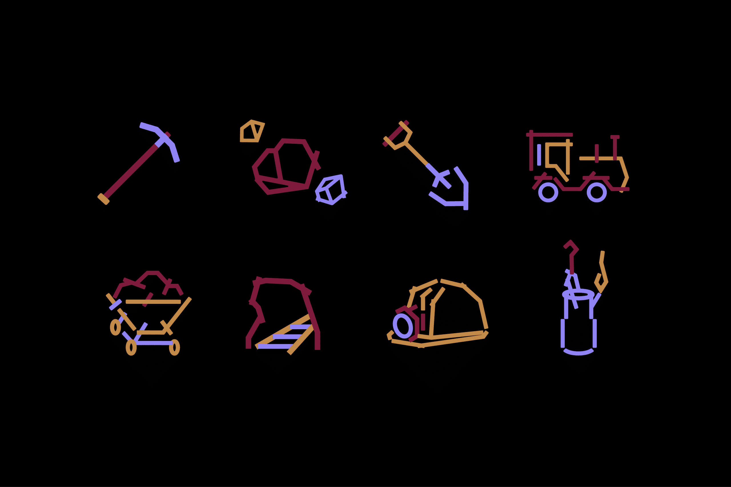Respetamos la base original del logotipo y la depuramos geométricamente para crear un símbolo más potente, contemporáneo y adaptable. El proyecto se despliega en dos líneas creativas con identidad propia: una infantil, articulada con tres mascotas; y otra para el público general, basada en una identidad de trazo inspirada en los raíles. Ambas trabajan con los colores de la roca de la mina.