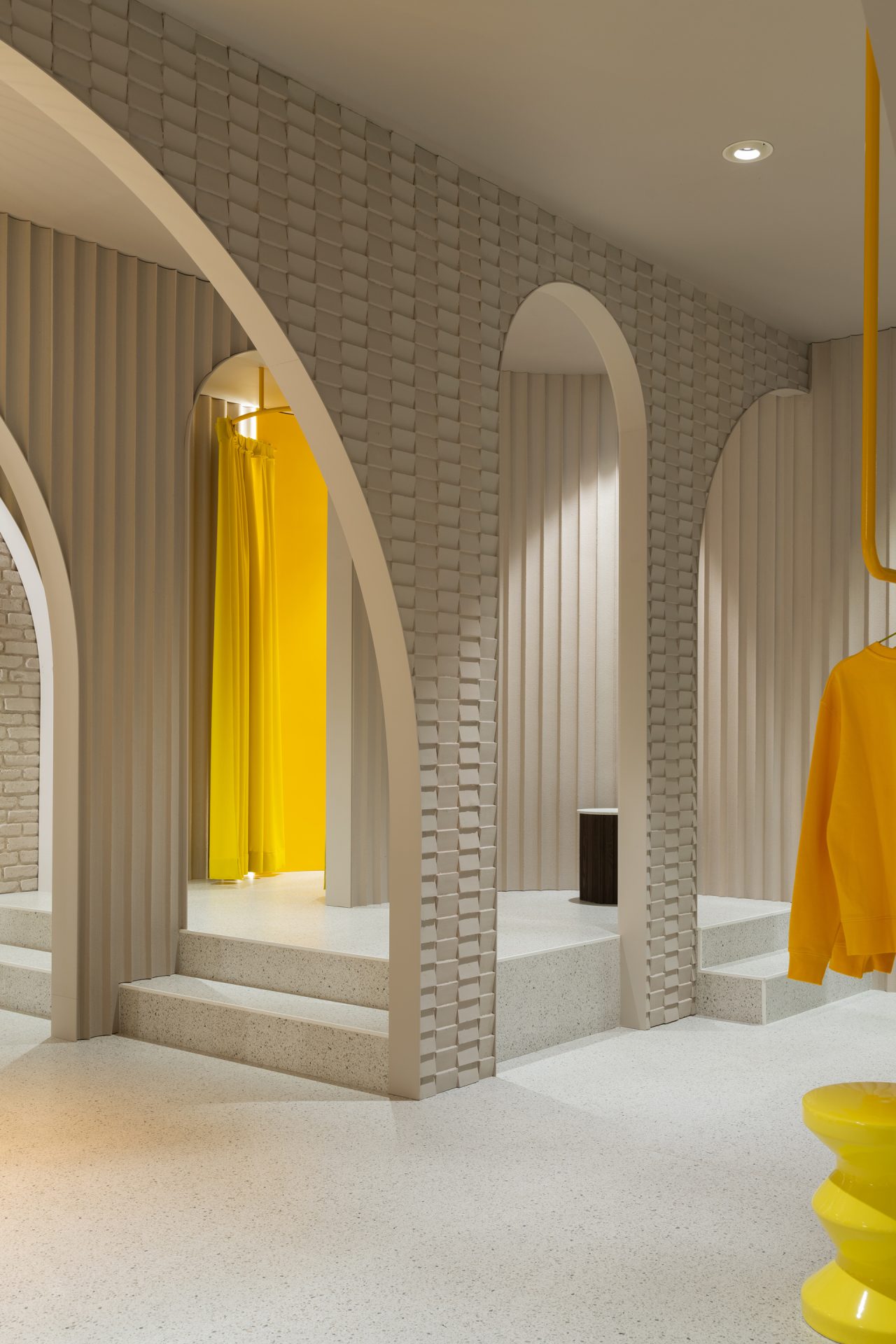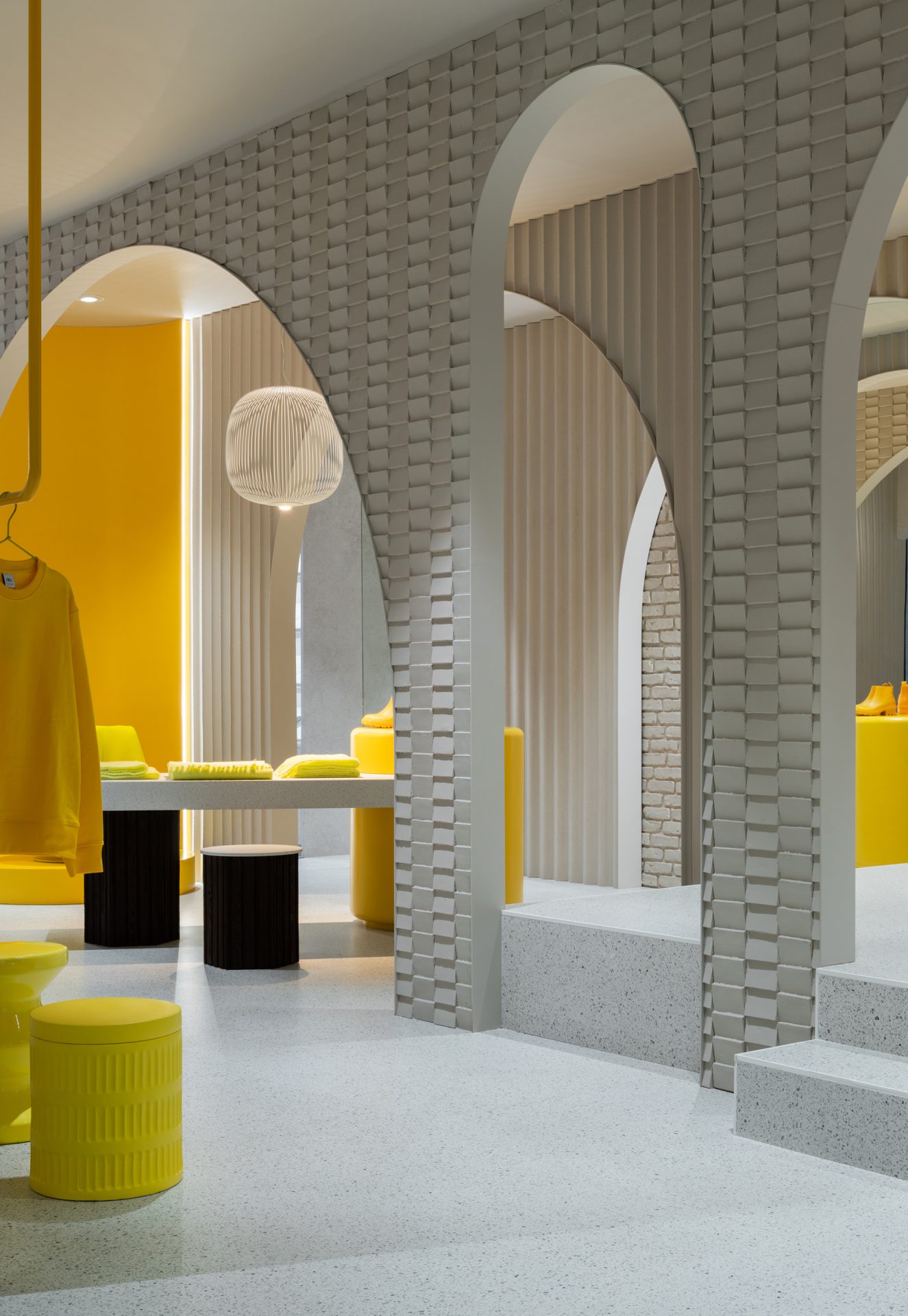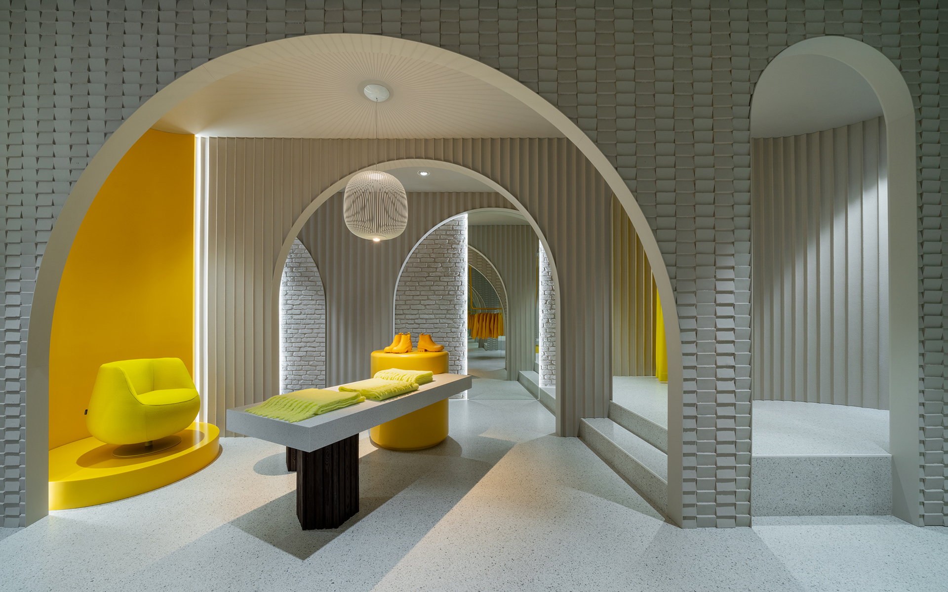 Para ello se ha generado un concepto de tienda retail que juega con diferentes superficies, capas y volúmenes para componer el espacio. Un proyecto monocromático a nivel de texturas donde se combinan por capas cada una de las referencias.