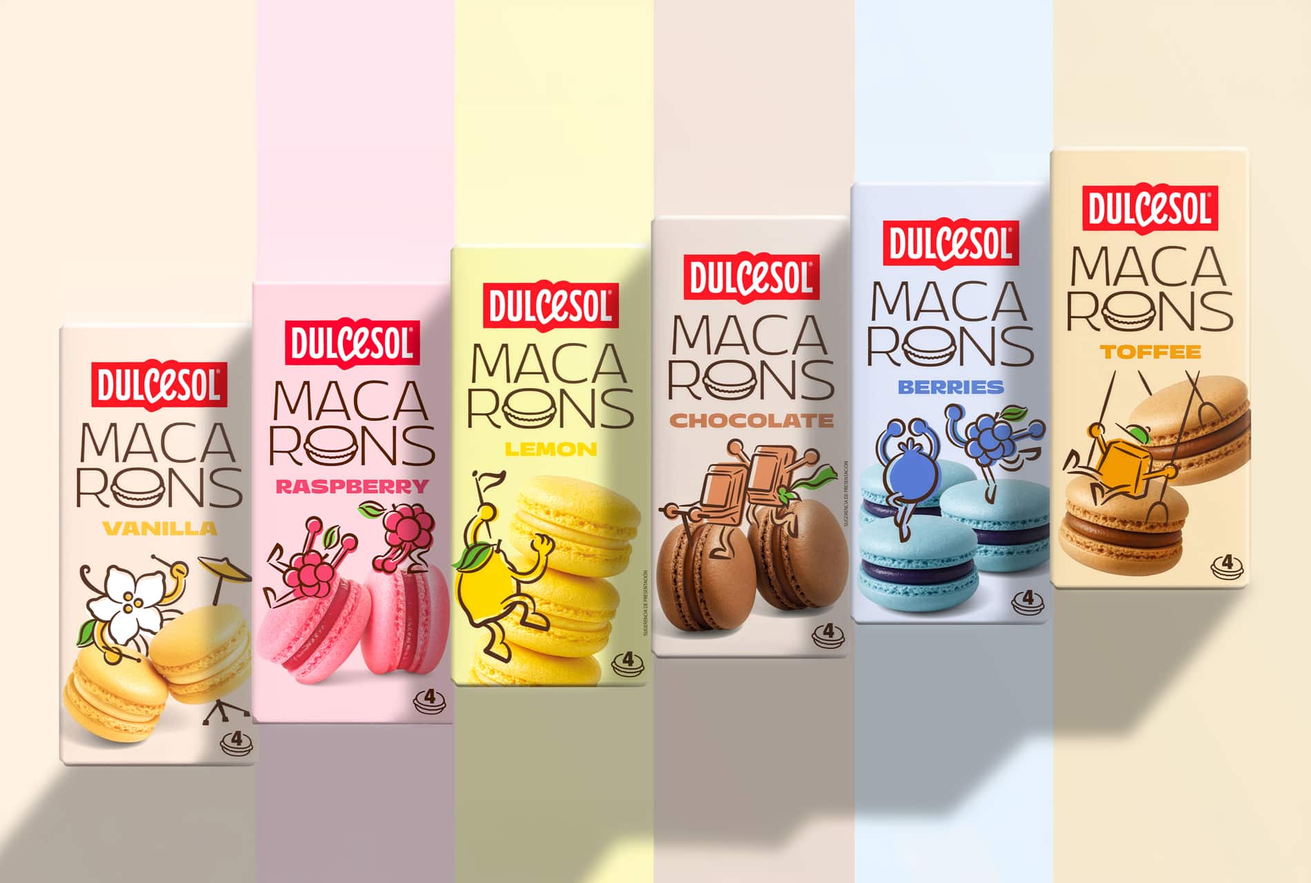 Rediseñar línea de Macarons de Dulcesol, marca de gran consumo de bollería y panadería del grupo Vicky Foods con 50 años en el mercado nacional e internacional.