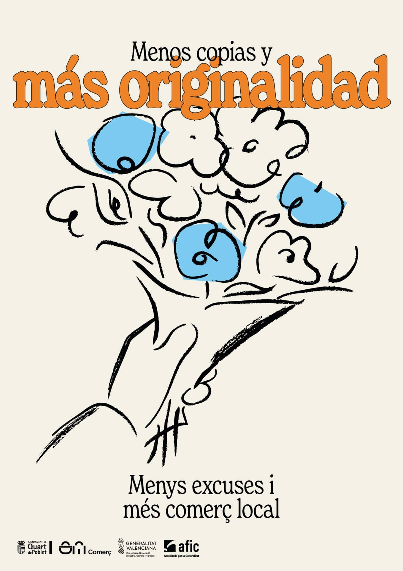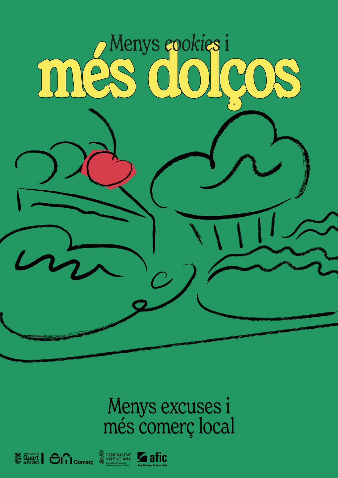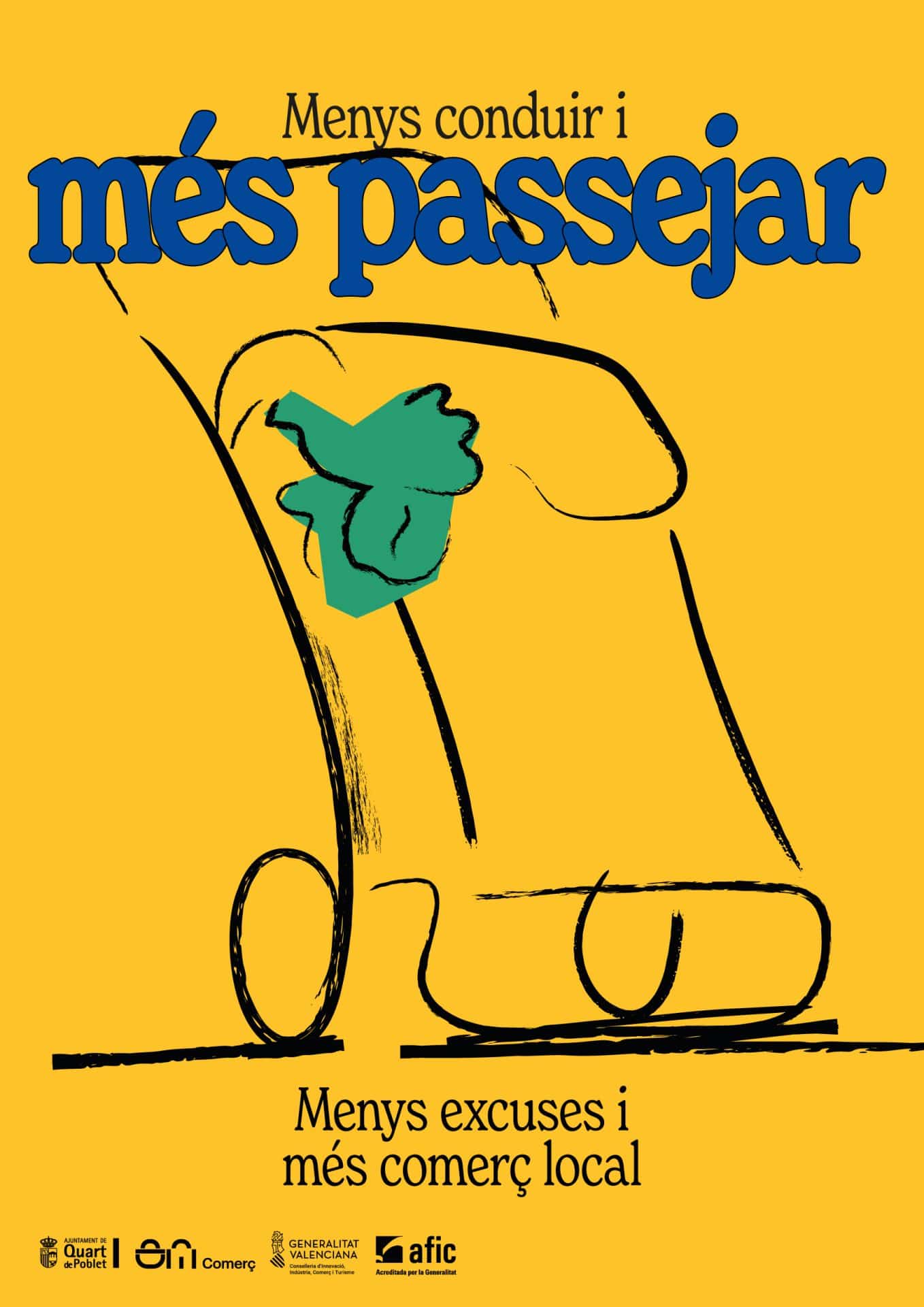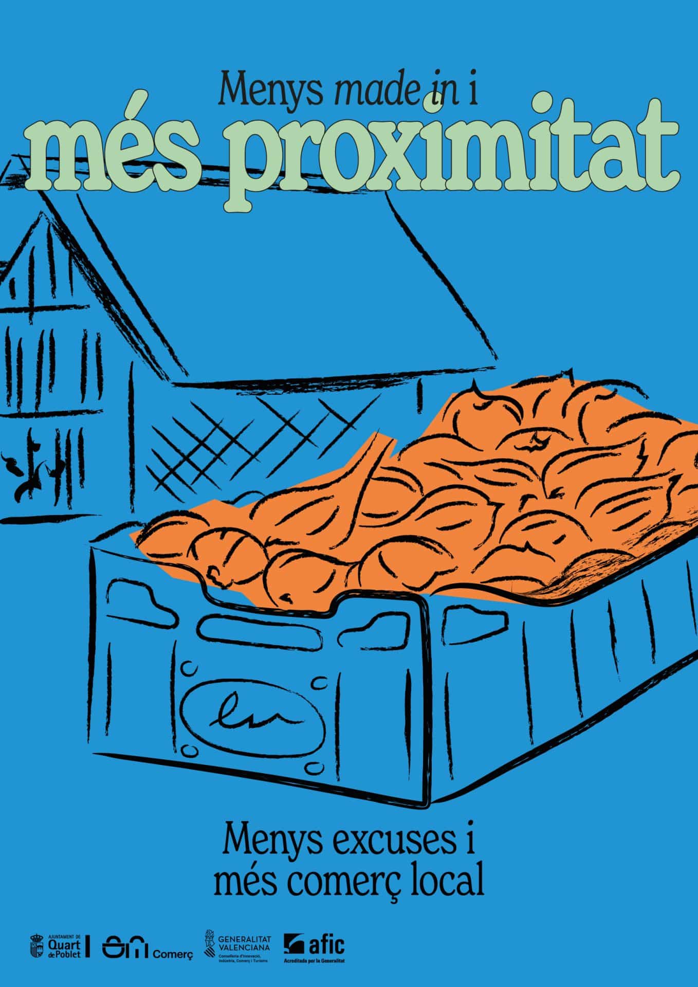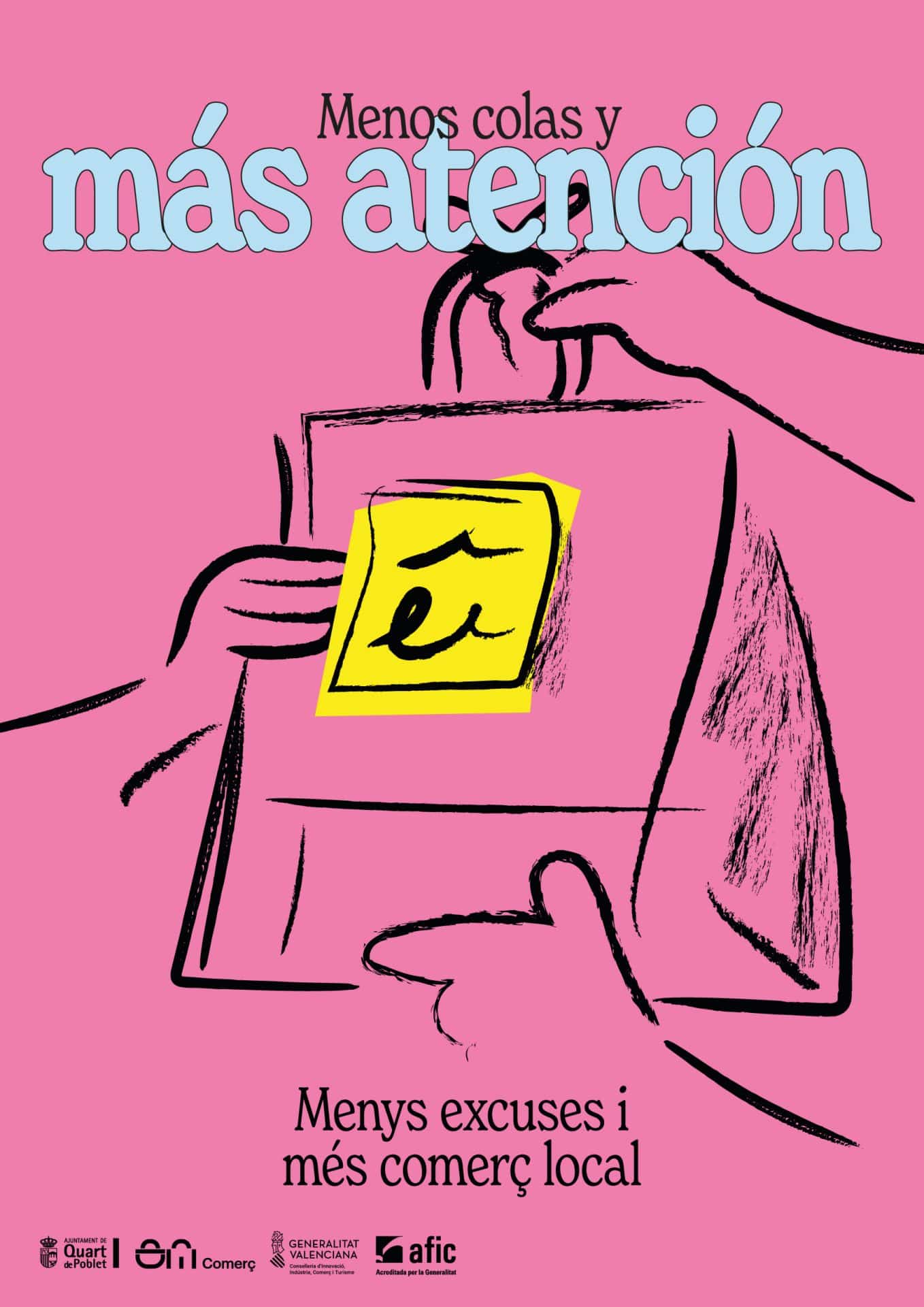 “Menys excuses i més comerç local” es una campaña impulsada por el Ayuntamiento de Quart de Poblet para poner en valor el comercio de proximidad con un lenguaje gráfico contemporáneo y directo. A través de ilustraciones del pueblo, colores vivos y mensajes irónicos, la campaña conecta con la ciudadanía, rompe tópicos y reivindica el acto de comprar en el barrio como un gesto cotidiano y cons