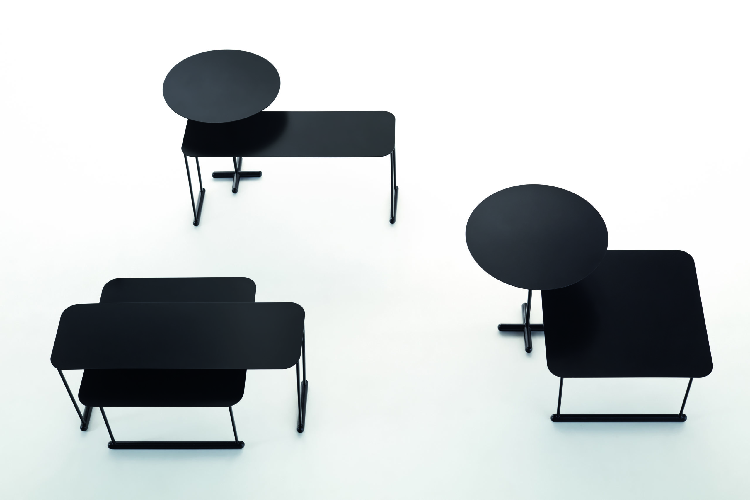 Dissenyades com a complement de la col·lecció de seients Numeral. Utilitzen el peu del sofà a manera de patí, un cilindre massís acabat en semiesfera que actua com a contrapés.