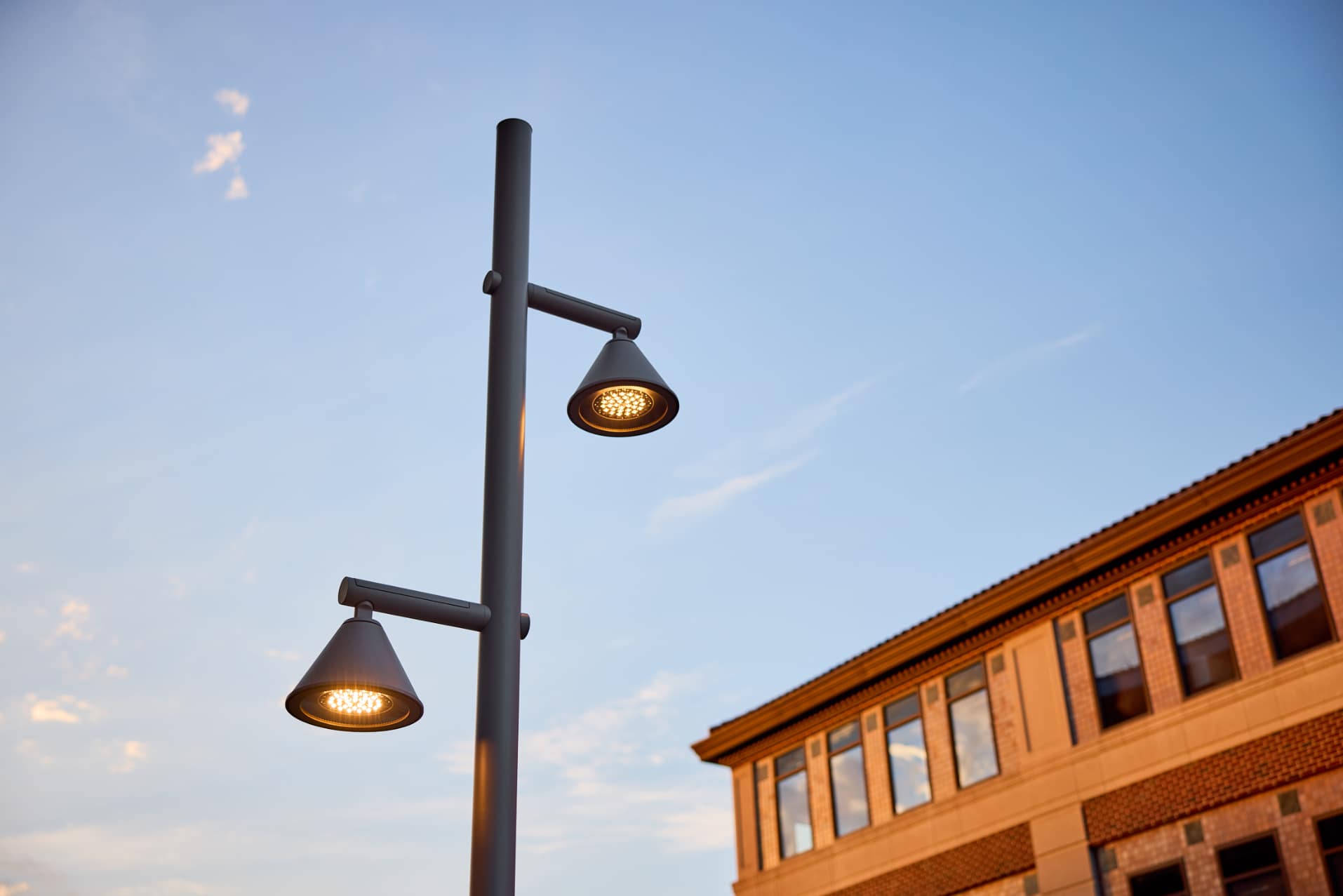 Landscape Forms buscaba una luminaria urbana que combinara la eficiencia tecnológica LED con un diseño arquitectónico de vanguardia. El encargo consistía en crear una farola que rompiera con la estética técnica fría, aportando una silueta elegante y minimalista. El objetivo era una solución de iluminación que fuera tan atractiva de día como funcional y precisa de noche.