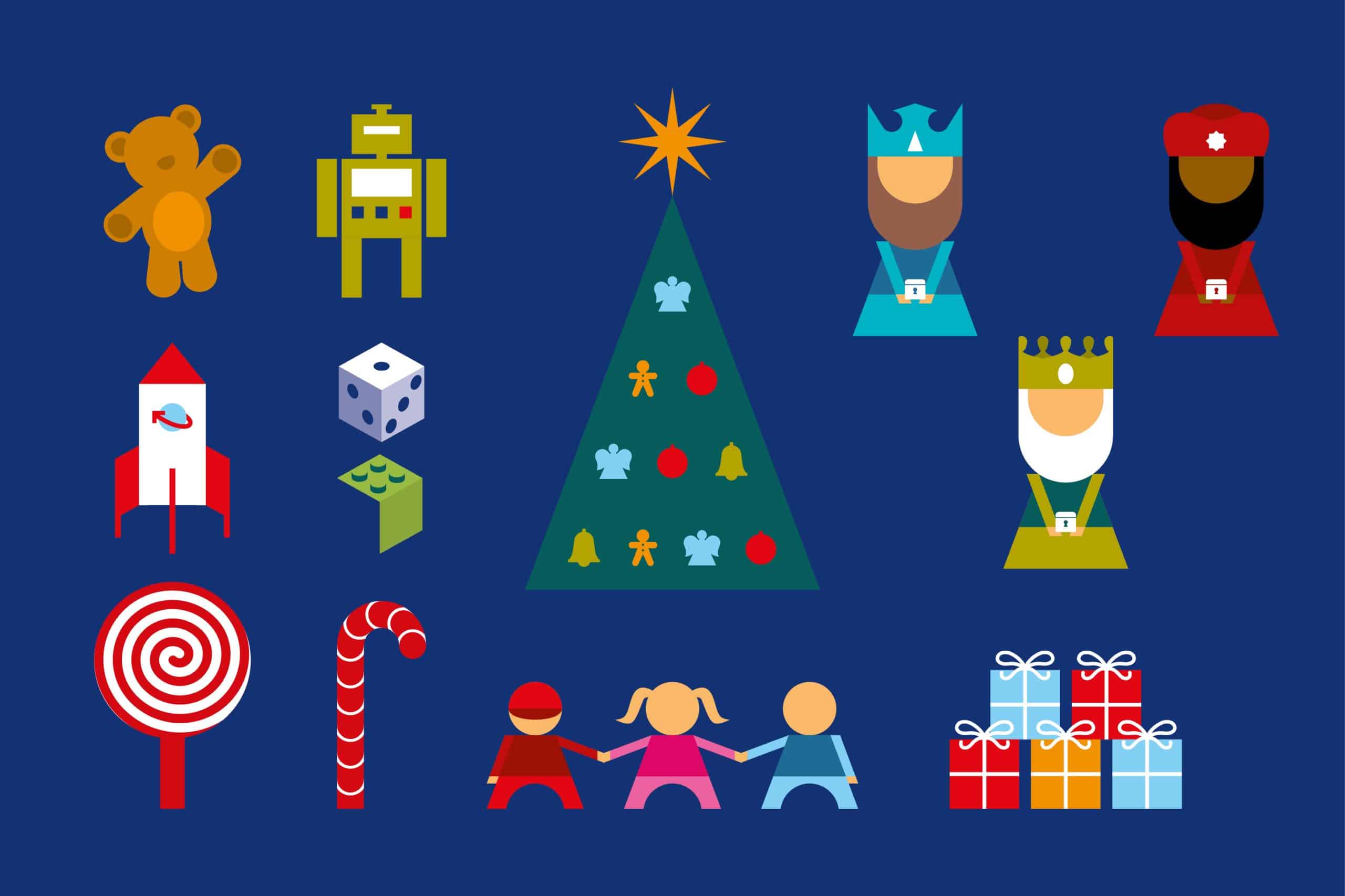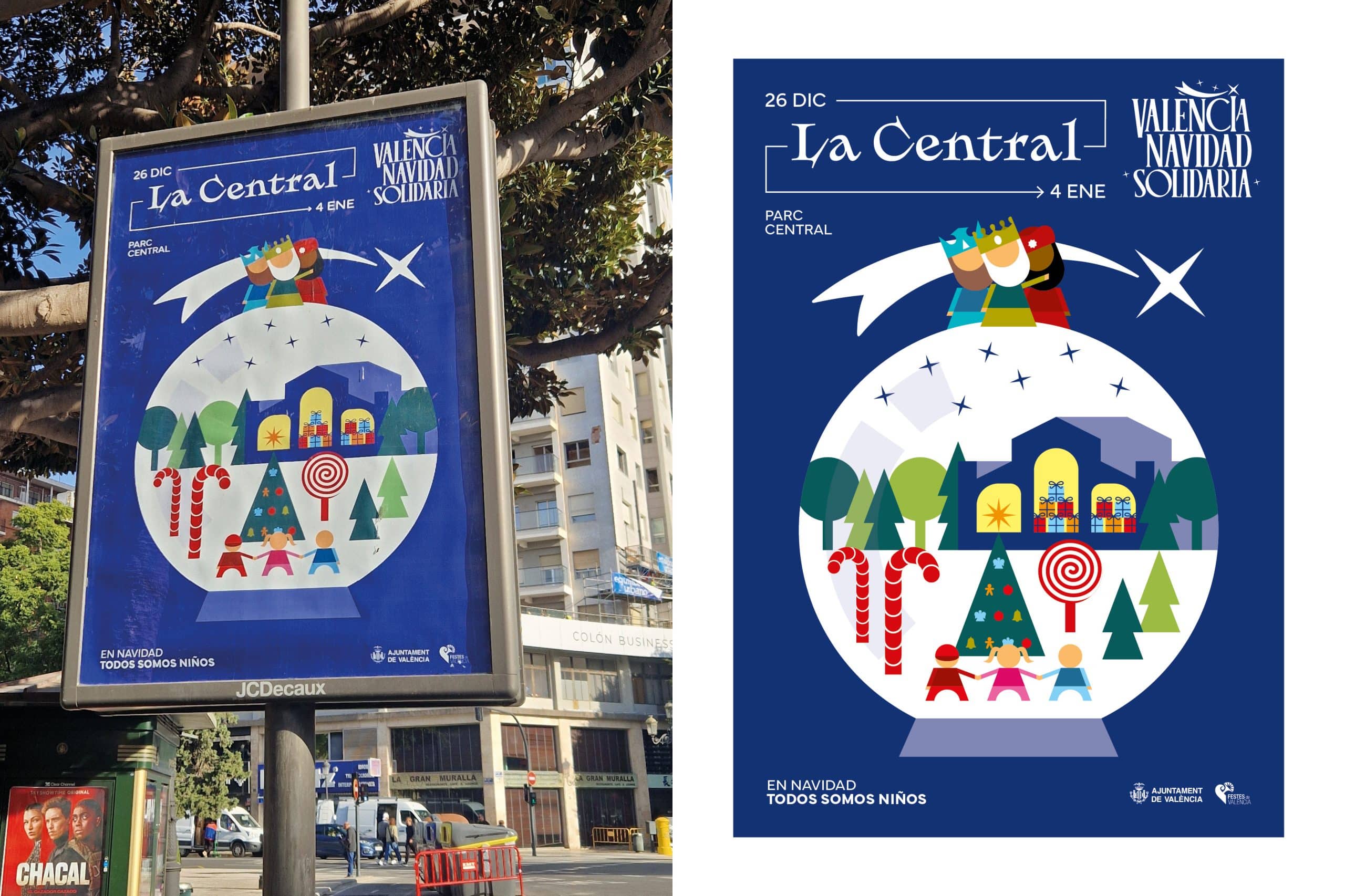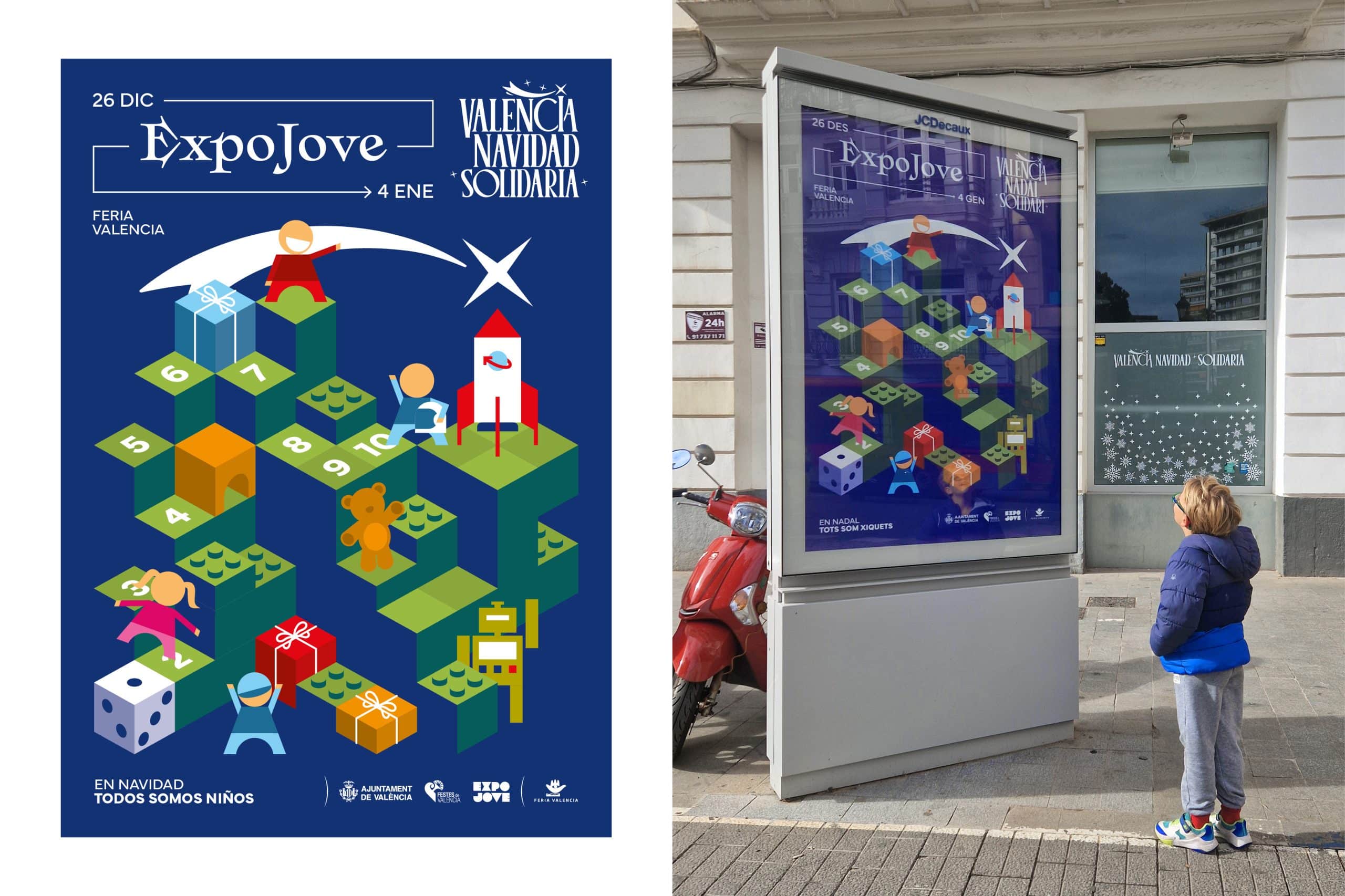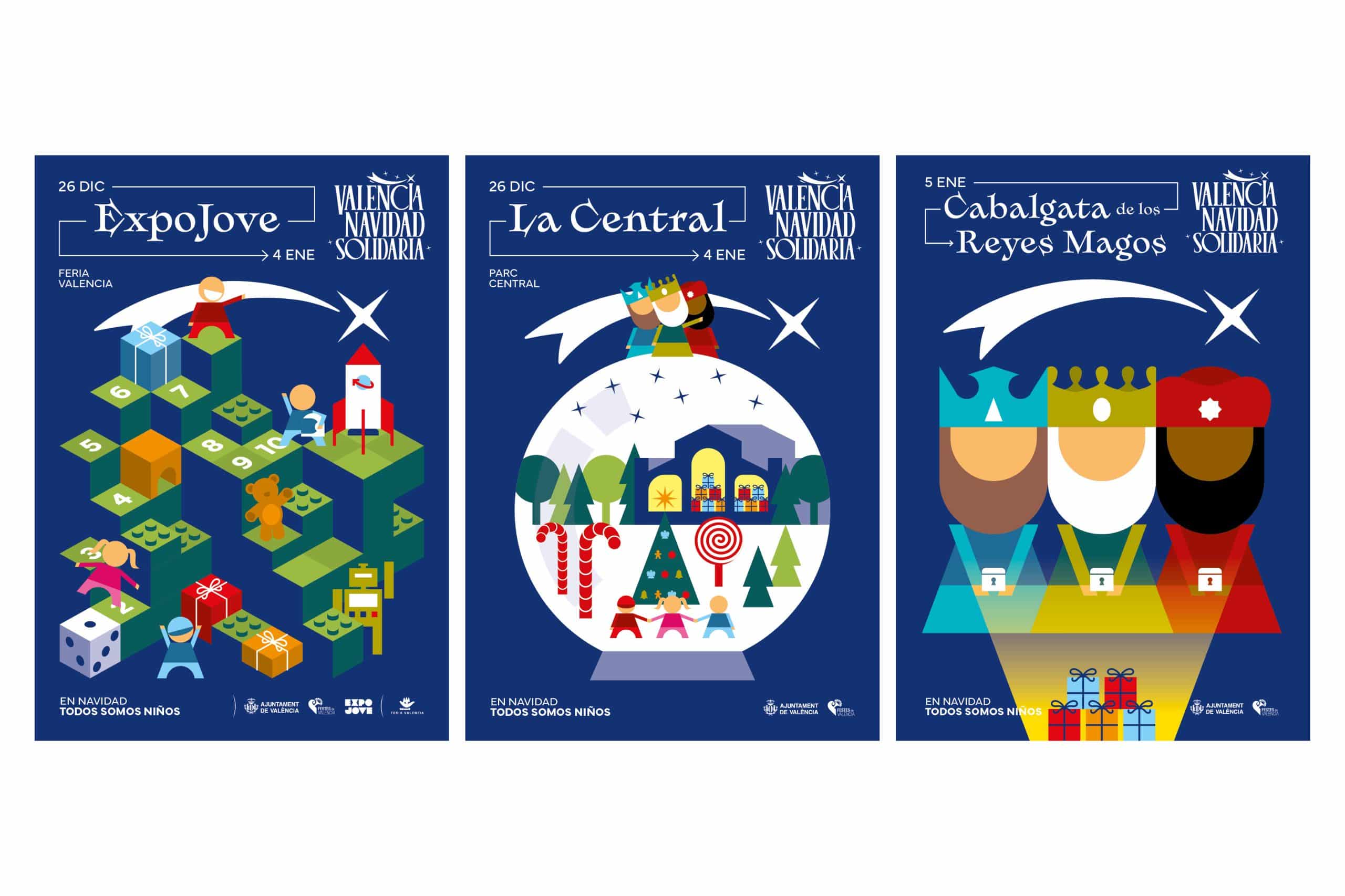 ExpoJove es una feria llena de diversión, espectáculos y juegos. La Central es el mágico almacén de los Reyes Magos, y la cabalgata, la recepción de Melchor, Gaspar y Baltasar a una noche mágica. Bajo el lema todos somos niños se diseño una imagen gráfica con un lenguaje común para los tres carteles, en los que esta presente en todos ellos la estrella de Belén.