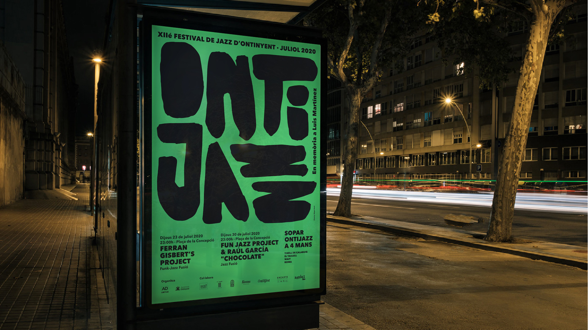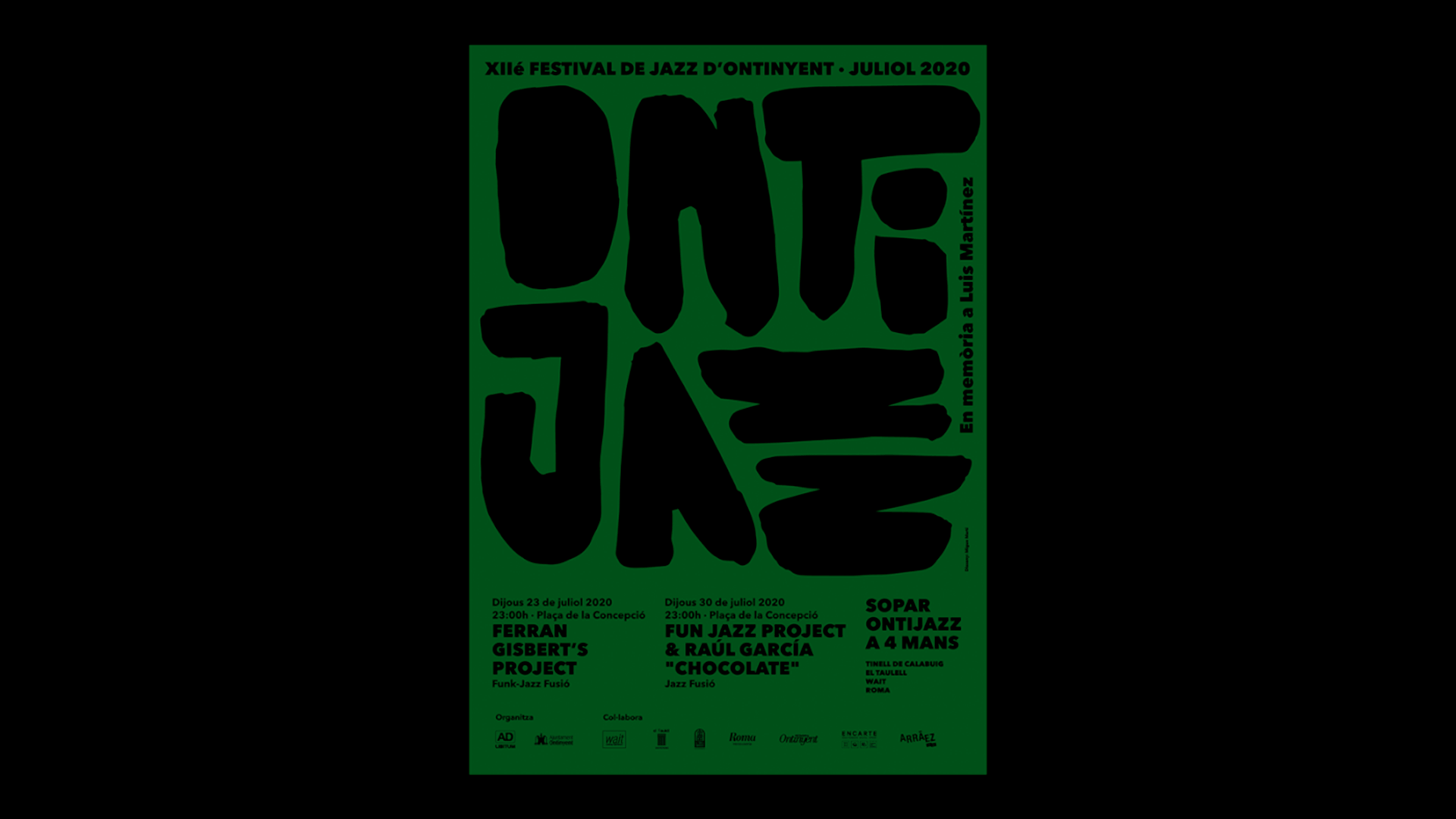 Diseño de cartel para XII edición de Ontijazz, un pequeño festival de jazz que pretende acercar esta música a esta localidad del interior valenciano. Se requiere comunicar el evento mediante una forma atractiva y potente.