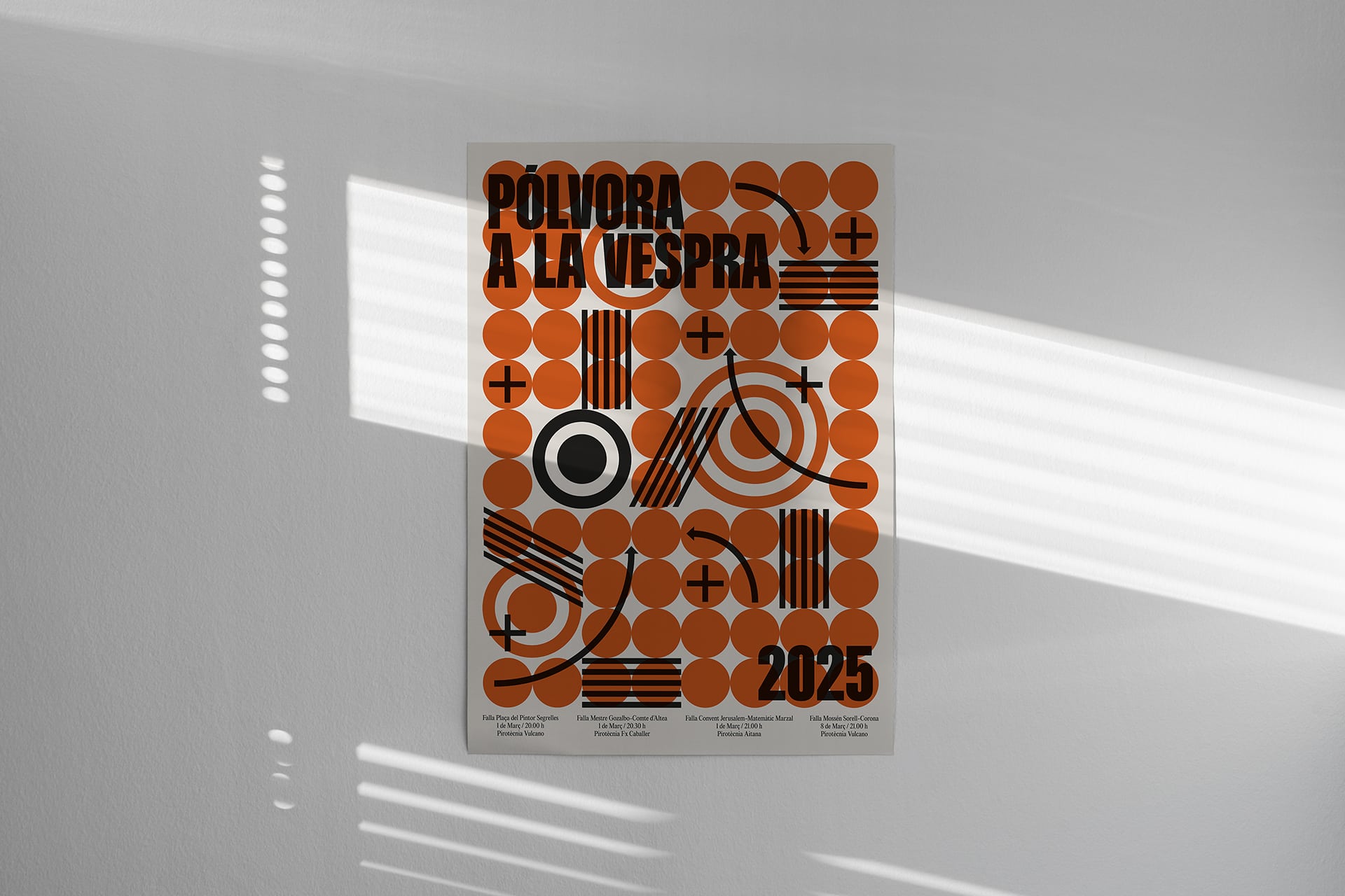 El diseño del cartel es toda una declaración de intenciones, explora nuevas representaciones gráficas de la comunicación en pirotecnia