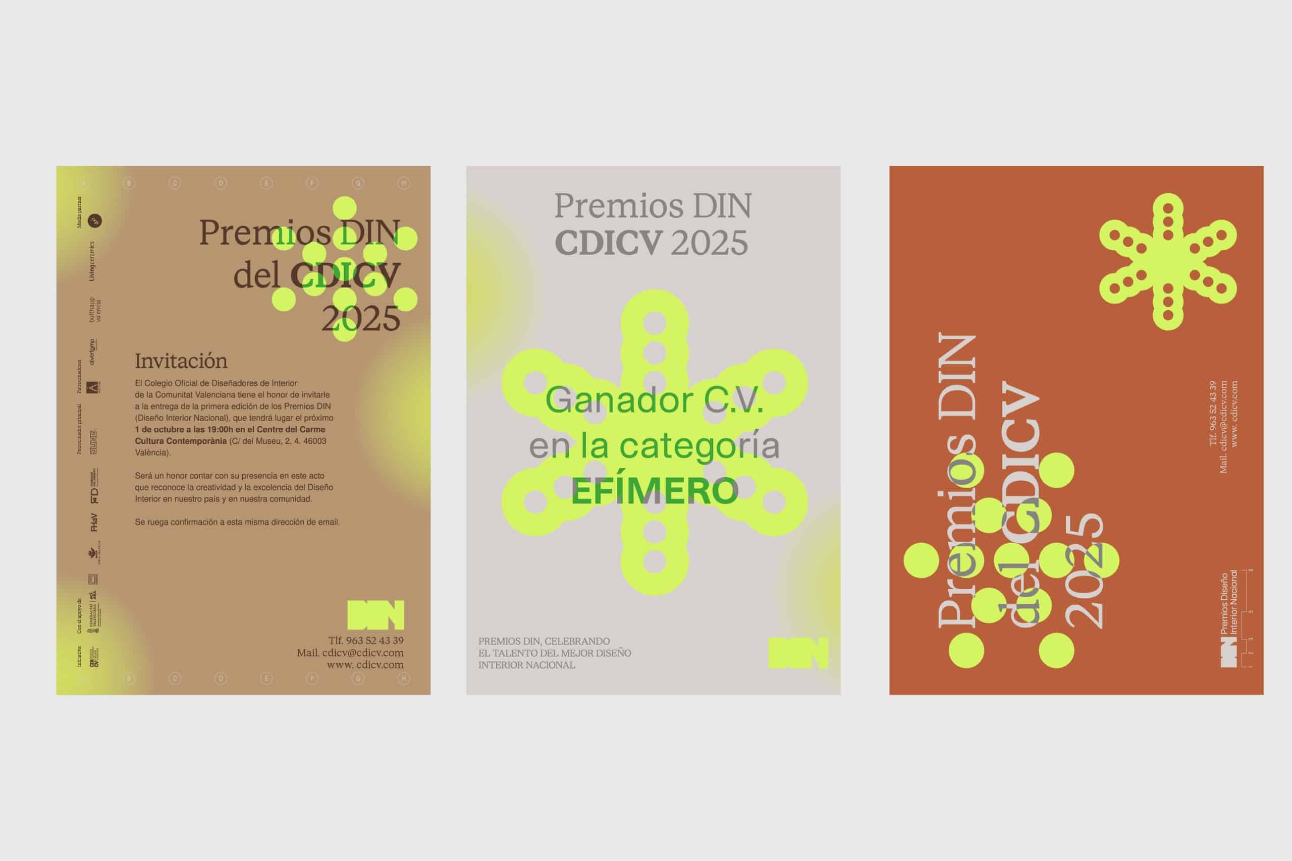 La 1ª edición de los Premios DIN, celebrada en el Centre del Carme Cultura Contemporània, consolidando a València como epicentro del interiorismo en España. Con el objetivo de posicionar la marca en el sector del diseño, se optó por desarrollar elementos de comunicación y merchandising con el flúor como seña de identidad.