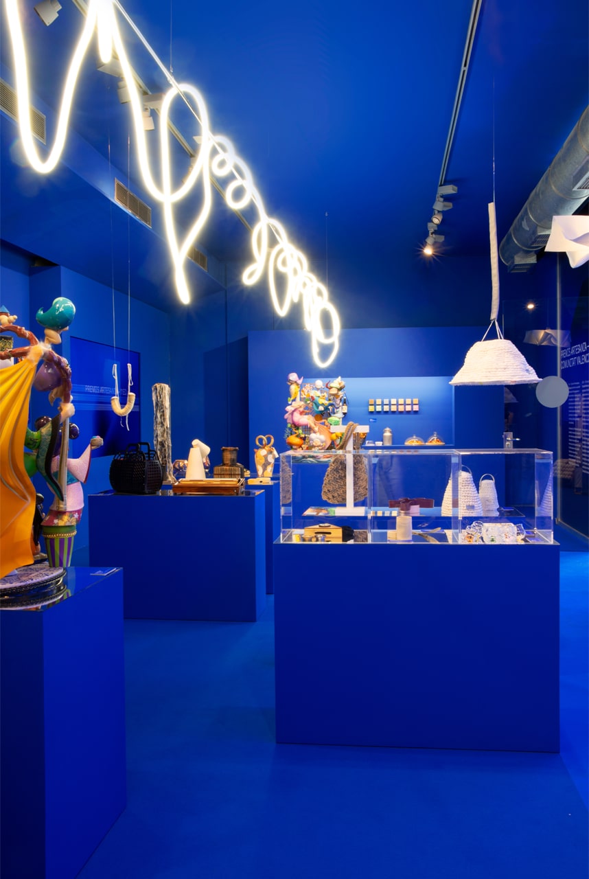 El azul está históricamente vinculado a la artesanía. Está presente en tintes textiles, cerámica, azulejos o vidrios de nuestra Comunitat. Conecta con el Mediterráneo, con la tecnología y la experimentación. El diálogo entre pasado y futuro es clave en esta exposición, donde se celebra tanto la preservación de técnicas tradicionales como la capacidad de innovación de los artesanos contemporáneos.