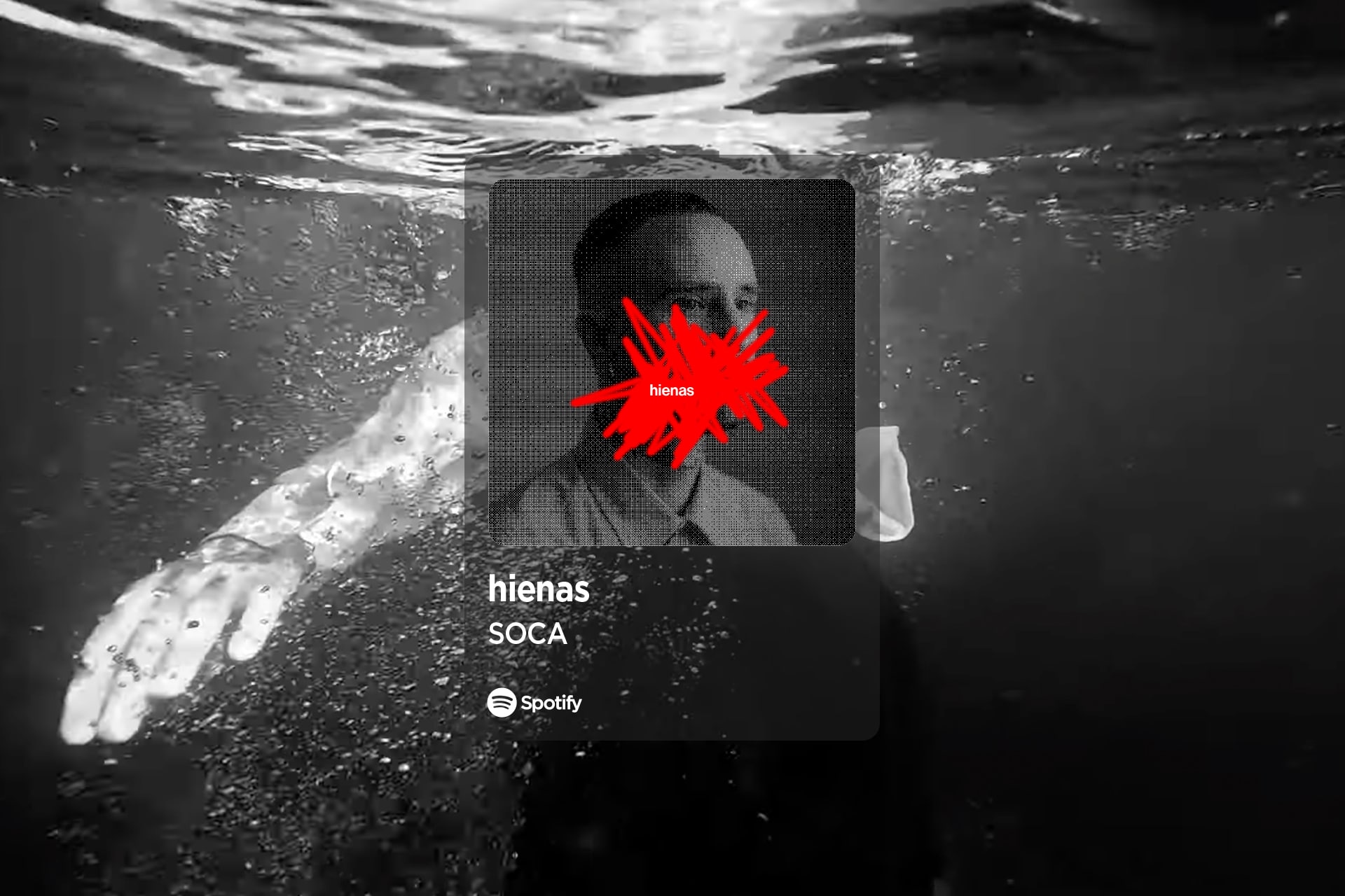 Creamos un sistema visual basado en una imagen única intervenida, reforzando que la esencia del artista es constante, pero su percepción cambia. En Hienas, el trauma se representa mediante bitmap y tachaduras; en Frontera, la transición se plasma en papel arrugado. Finalmente, en el EP, el agua se evapora bajo una luz intensa, transformando las lágrimas en destellos de esperanza.