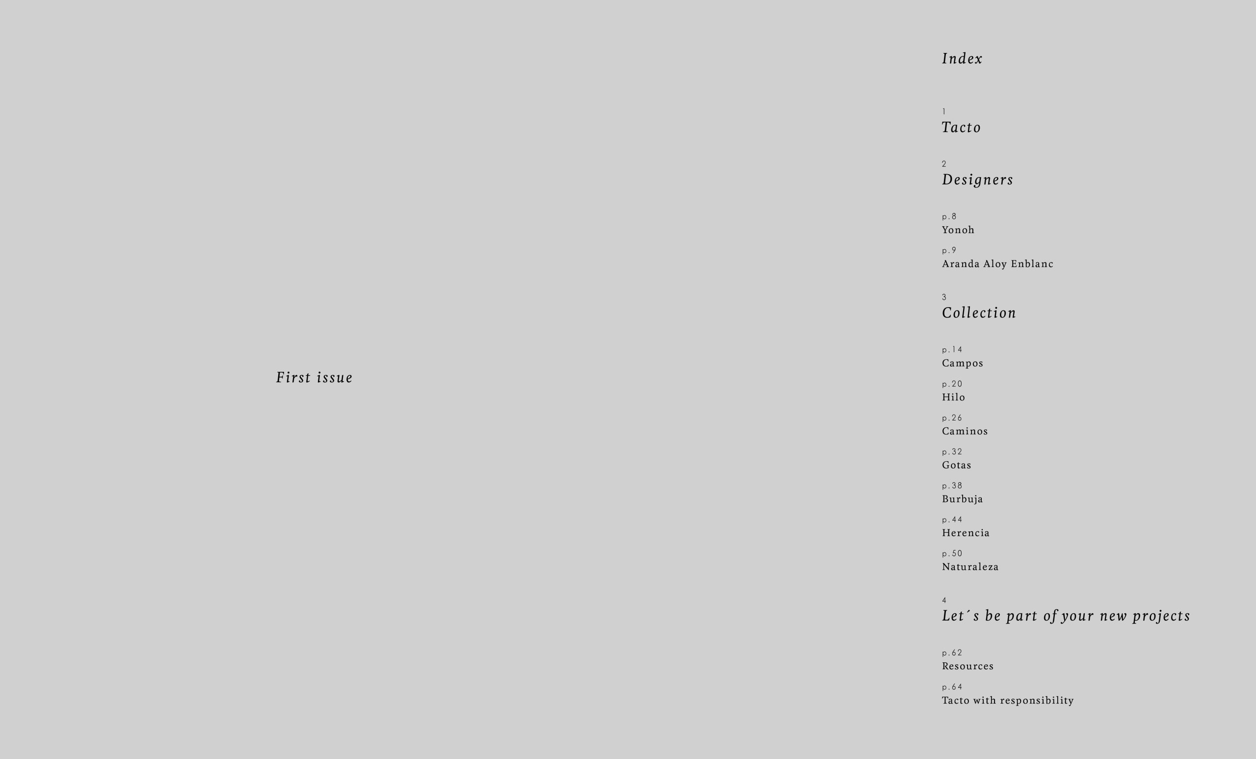 Tacto “First Issue” | Aranda Aloy Enblanc