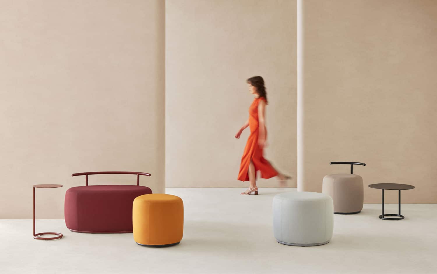 El catálogo de Mobboli requería un conjunto de pufs de diferentes tamaños. De personalidad marcada pero a la vez fuese capaz de integrarse en espacios diferentes de forma fácil. Con posibilidad de integrar ruedas y un elemento que hiciera las veces de asa y respaldo bajo. El conjunto además debía ir acompañado de mesas auxiliares de fácil producción y aspecto ligero.