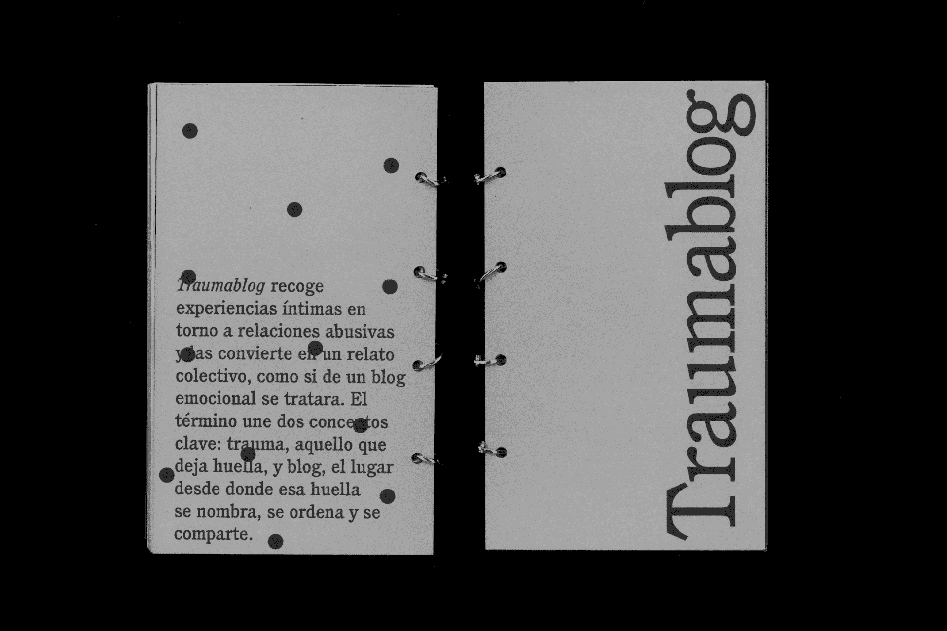 Traumablog es una publicación autoetnográfica que visibiliza la violencia en las relaciones afectivas mediante testimonios, reflexión y recursos visuales. El proyecto combina experiencia personal y análisis crítico para acompañar simbólicamente a quienes han sufrido abuso y fomentar una lectura consciente, colectiva y reparadora.