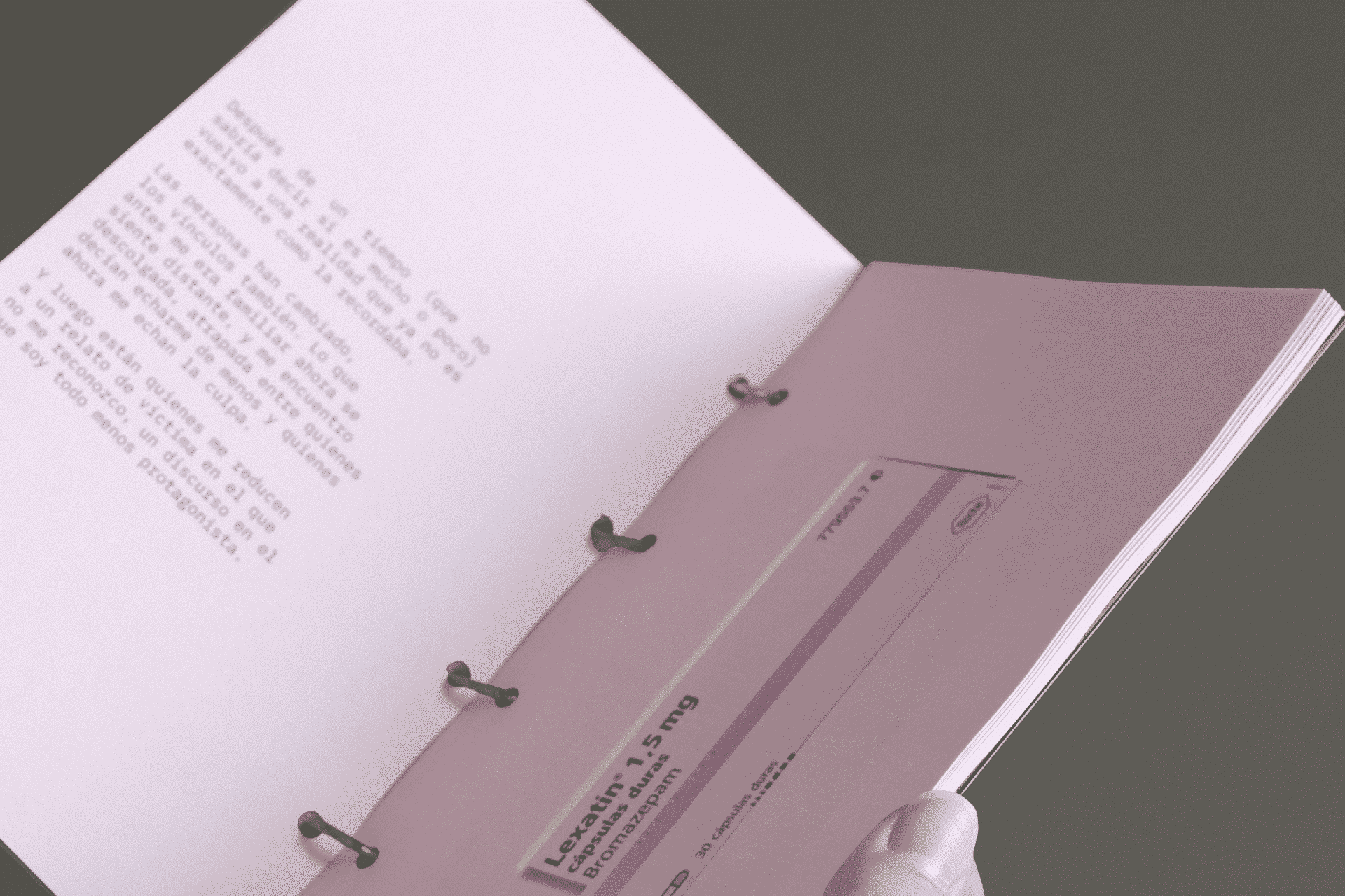 La obra se produce mediante un proceso de investigación, recopilación de testimonios, escritura reflexiva y diseño editorial experimental. Incluye trabajo tipográfico, tratamiento visual expresivo y maquetación cuidada para construir un objeto editorial coherente con el contenido emocional y crítico del proyecto.