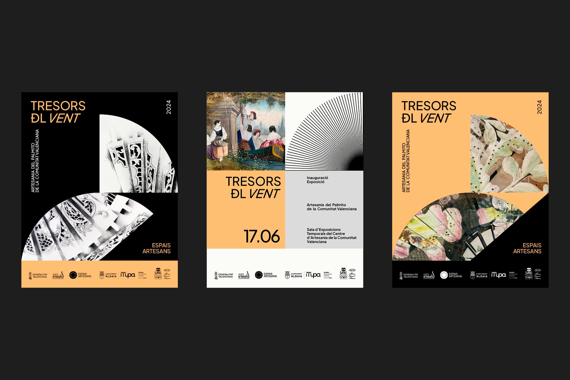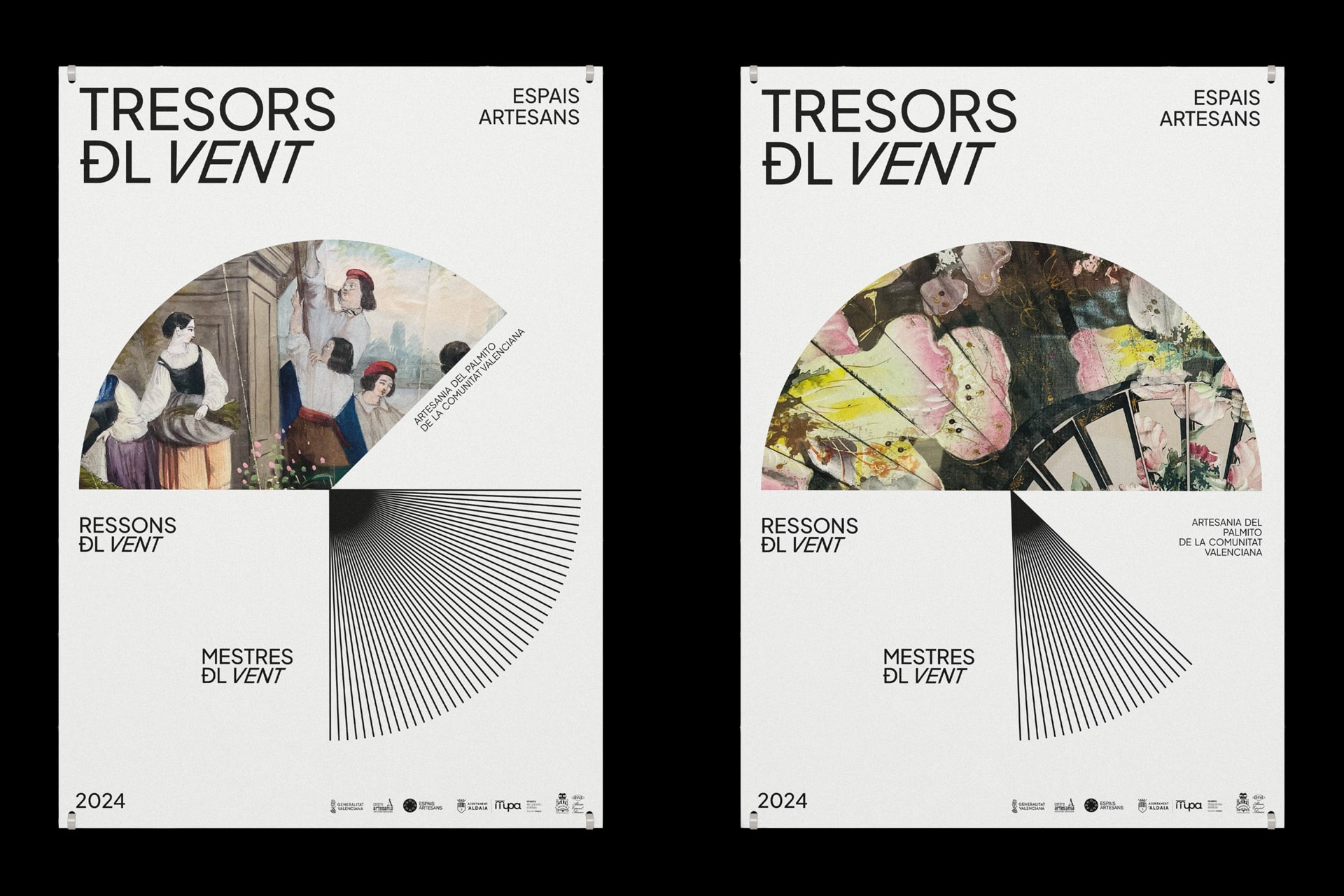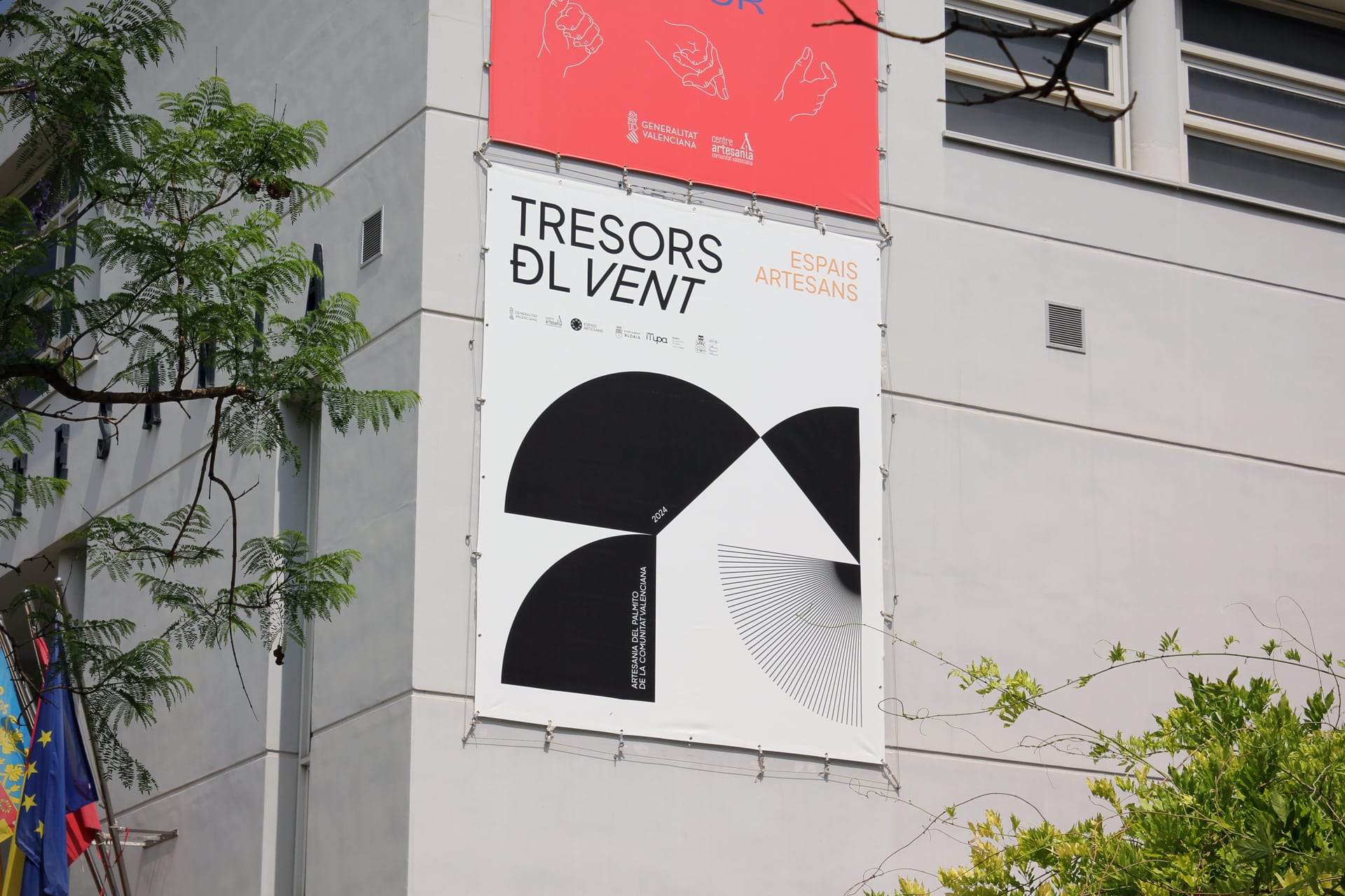 Proyectamos un espacio zonificado en "Mestres del Vent" y "Ressons del Vent", aunando artesanía local y diseño contemporáneo de manera equilibrada. La gráfica y el diseño expositivo incluyeron lonas y vinilos de gran formato, vitrinas y texturas ligeras y evocadoras.