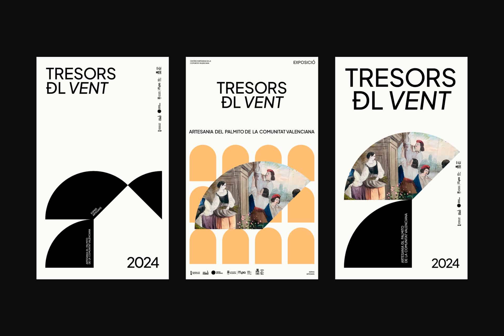 Creamos el naming "TRESORS ÐL VENT". La marca sintetiza el abanico mediante una contracción tipográfica y usa la cursiva para evocar el aire en movimiento. La identidad visual, se fundamenta en la geometría del abanico y sus ángulos de apertura.
