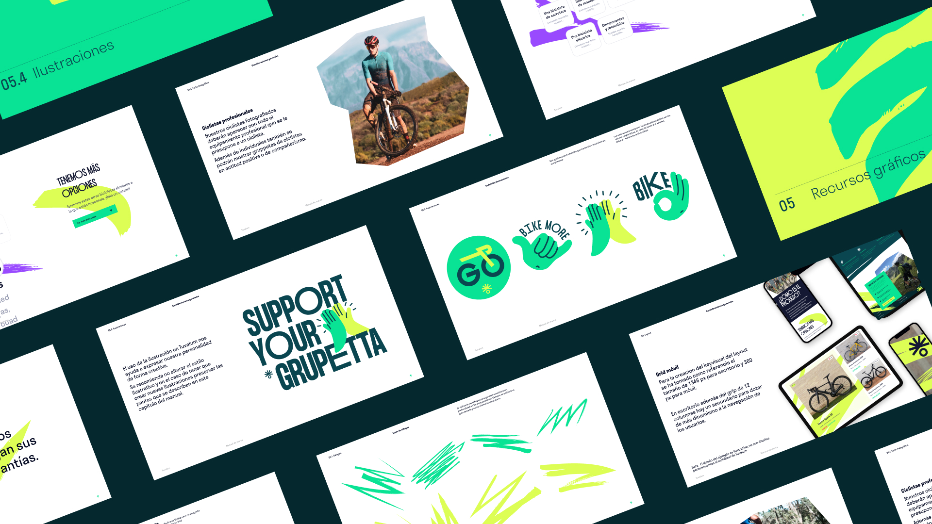 Todas las rutas ciclistas tienen un mi destino: disfrutar del camino hasta la puesta de sol. Se creó un isotipo y sistema de marca propio, junto unas 'ráfagas' que el camino de las rutas y dan profundidad.