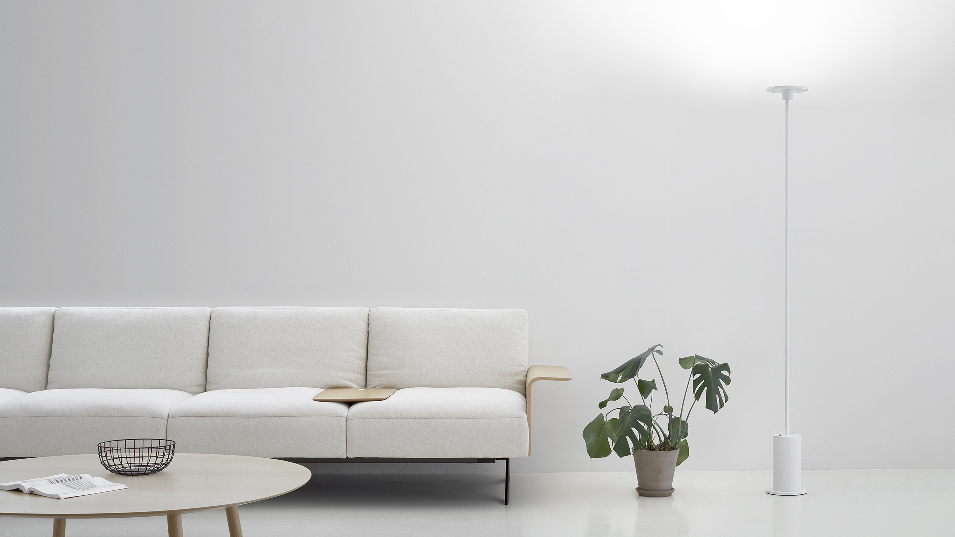 Como la línea que separa el cielo y la tierra, Up marca un horizonte en el espacio. Su luz, proyectada verticalmente, evoca un resplandor natural que se adentra en la estancia.