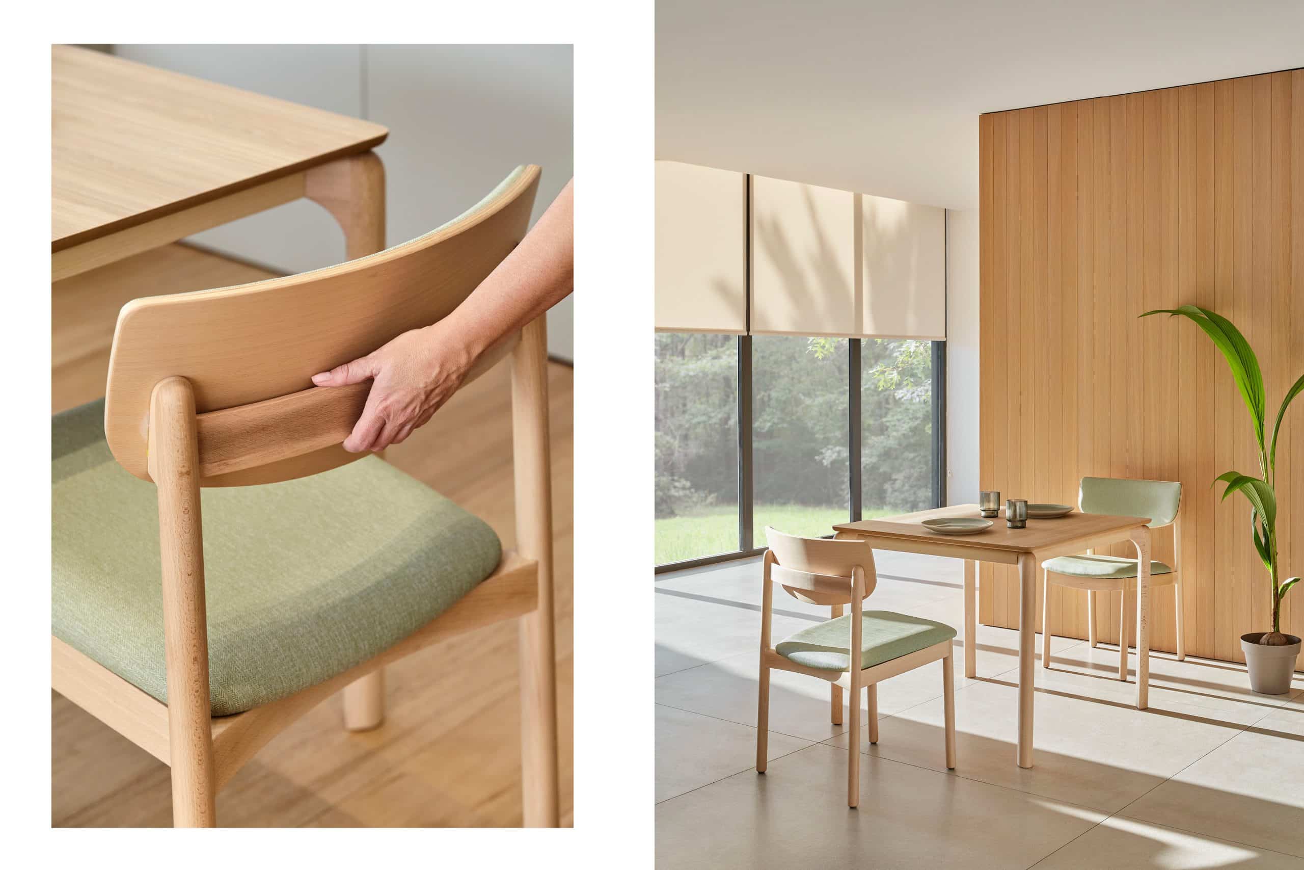 Wave reinterpreta el mobiliario senior desde una mirada contemporánea y acogedora. Sus líneas redondeadas aportan calidez, seguridad y accesibilidad. La silla integra asiento acolchado, respaldo ergonómico, asa posterior y brazos adelantados que facilitan la incorporación. Una colección pensada para fomentar la autonomía y crear espacios más humanos y dignos.