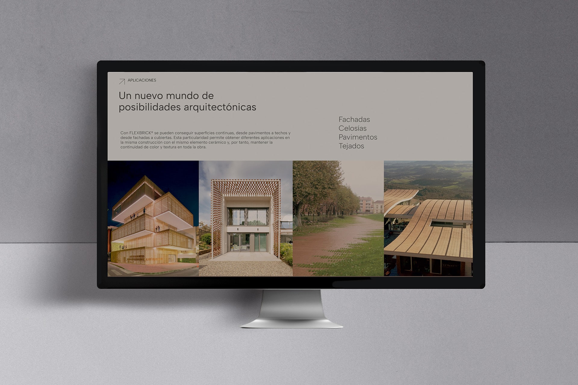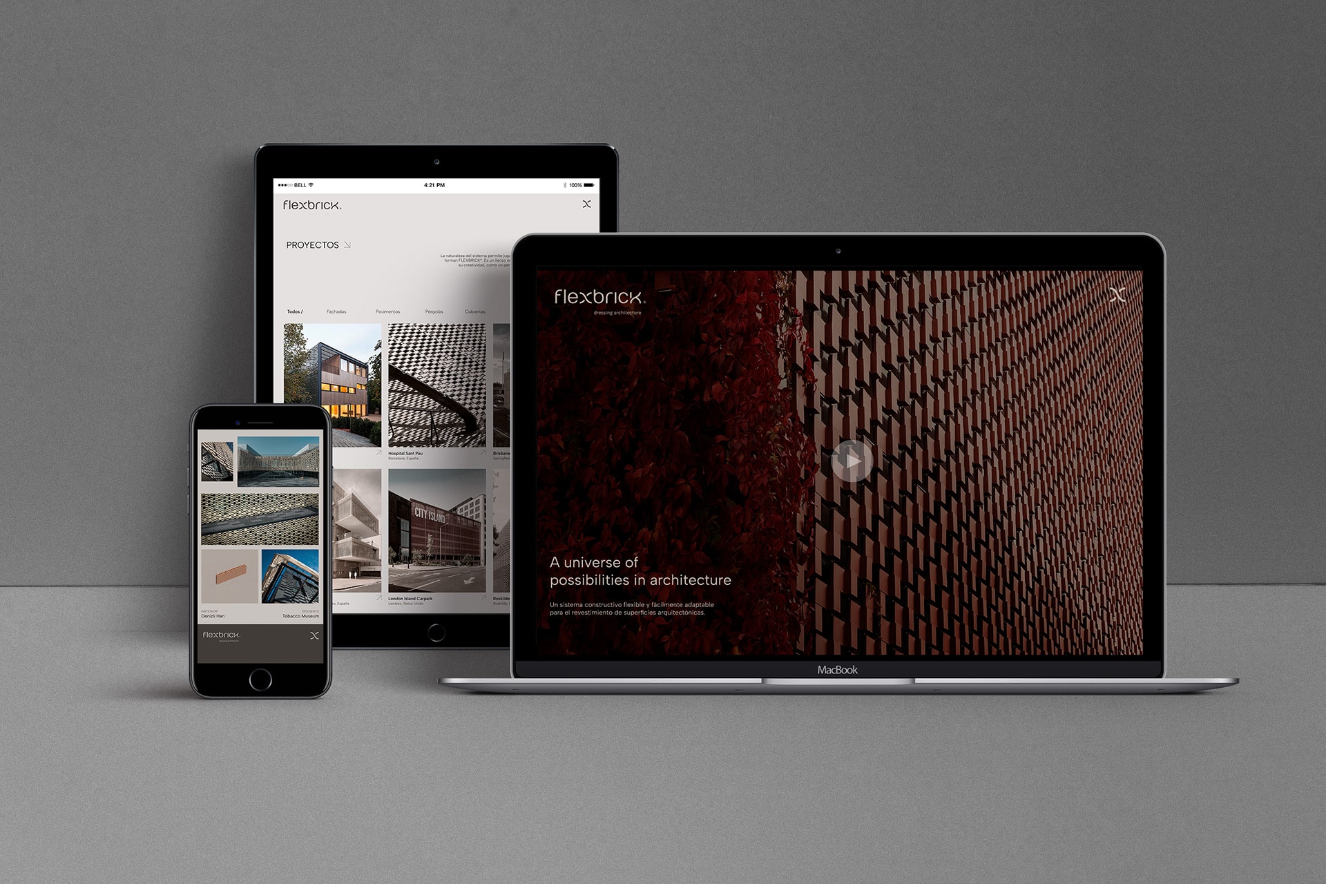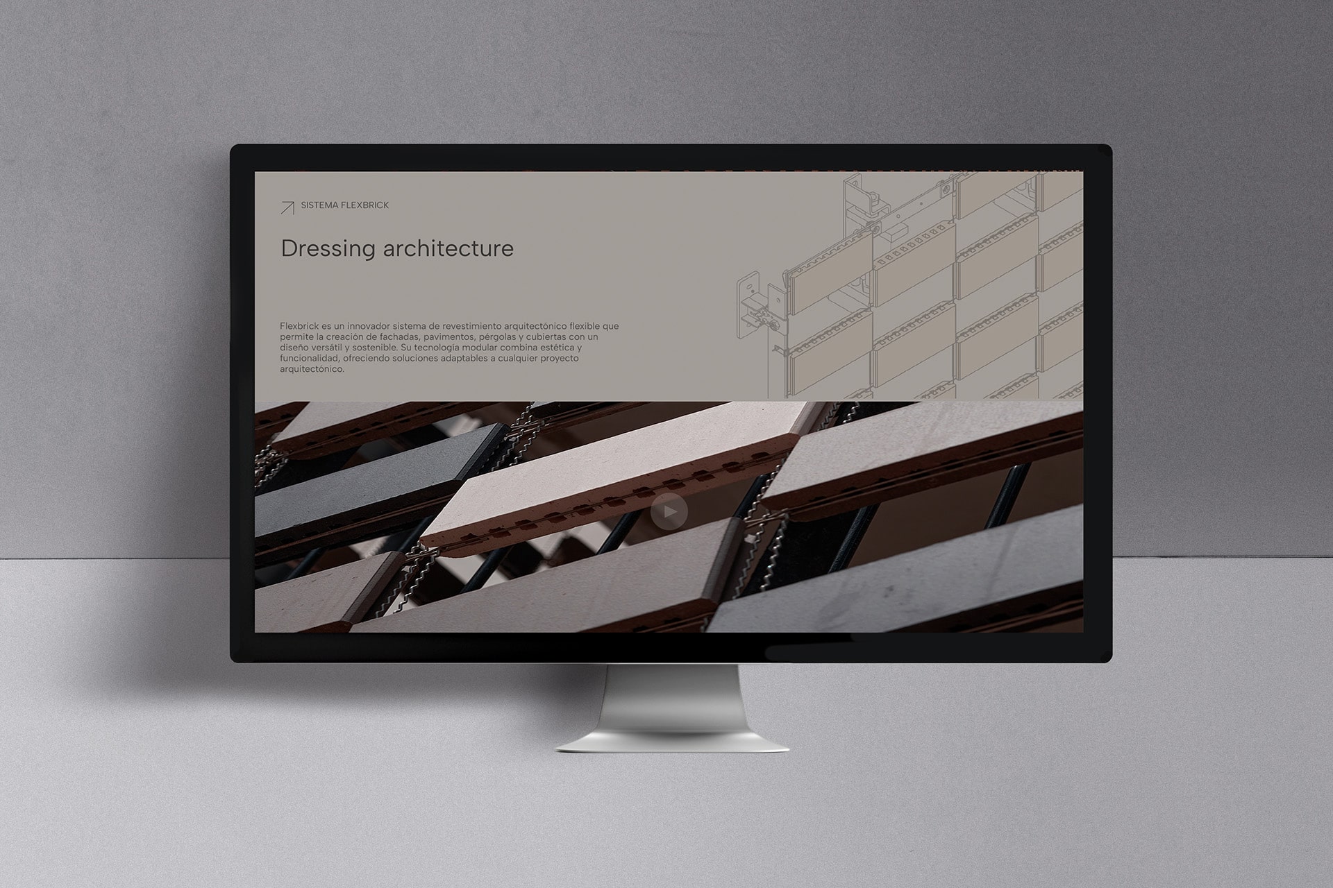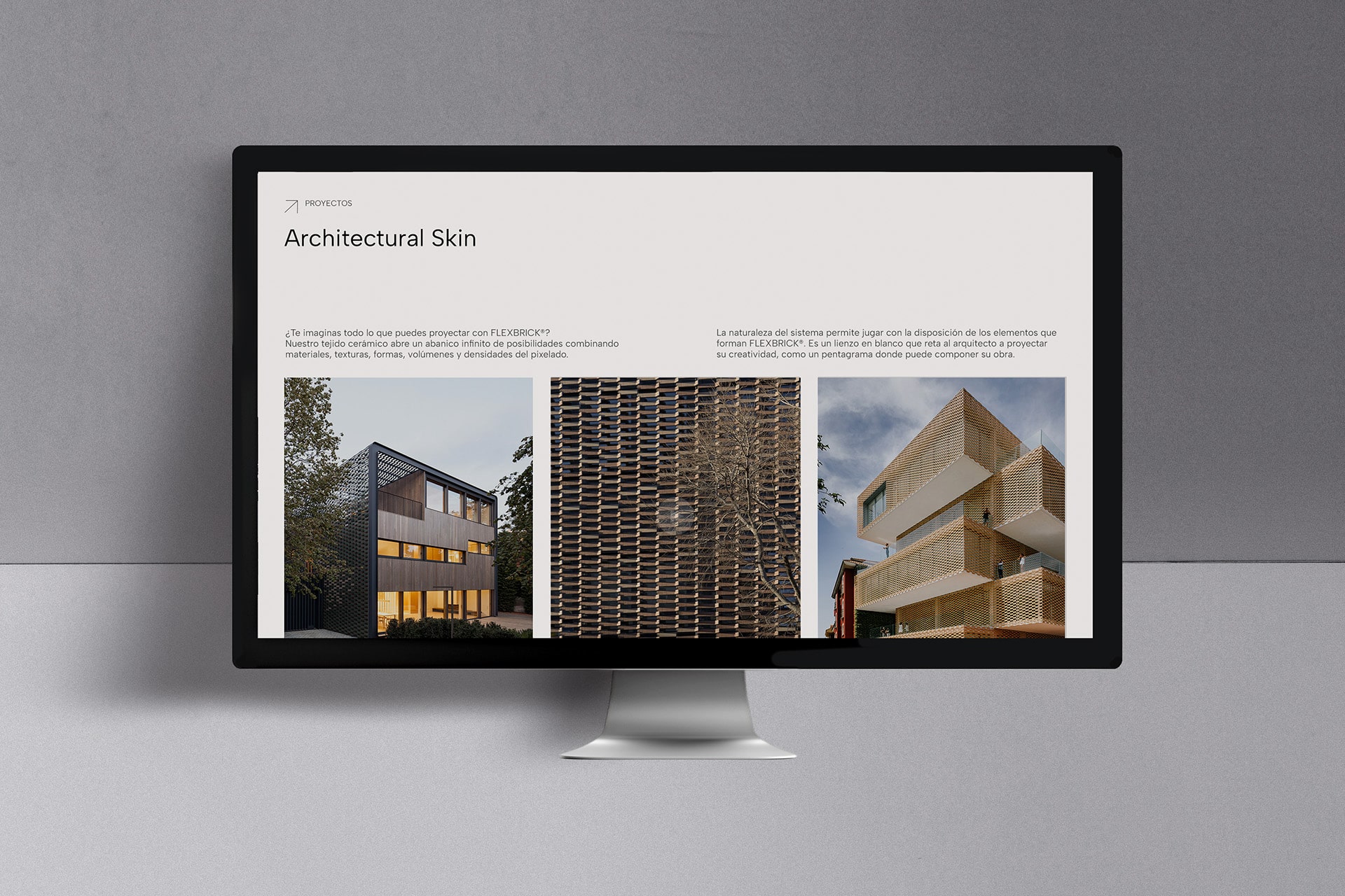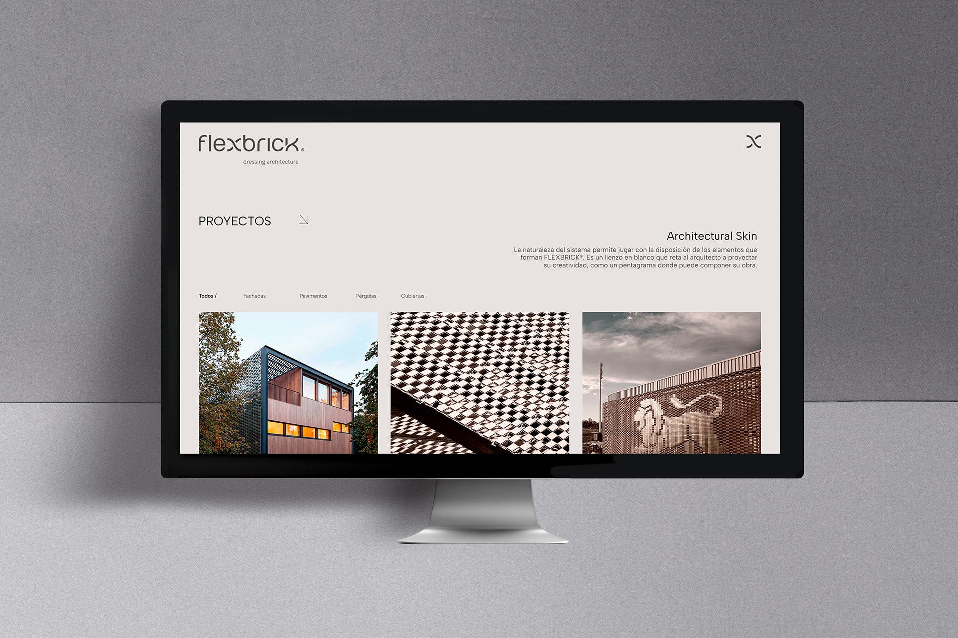 La nueva web implementa el restyling de identidad como eje estructural del diseño. Sistema tipográfico, cromatismo, ritmo visual y lenguaje gráfico se trasladan al entorno digital creando coherencia y reconocimiento. La arquitectura de contenidos organiza tecnología y proyectos en un relato claro, posicionando a Flexbrick desde la innovación y la cultura arquitectónica.